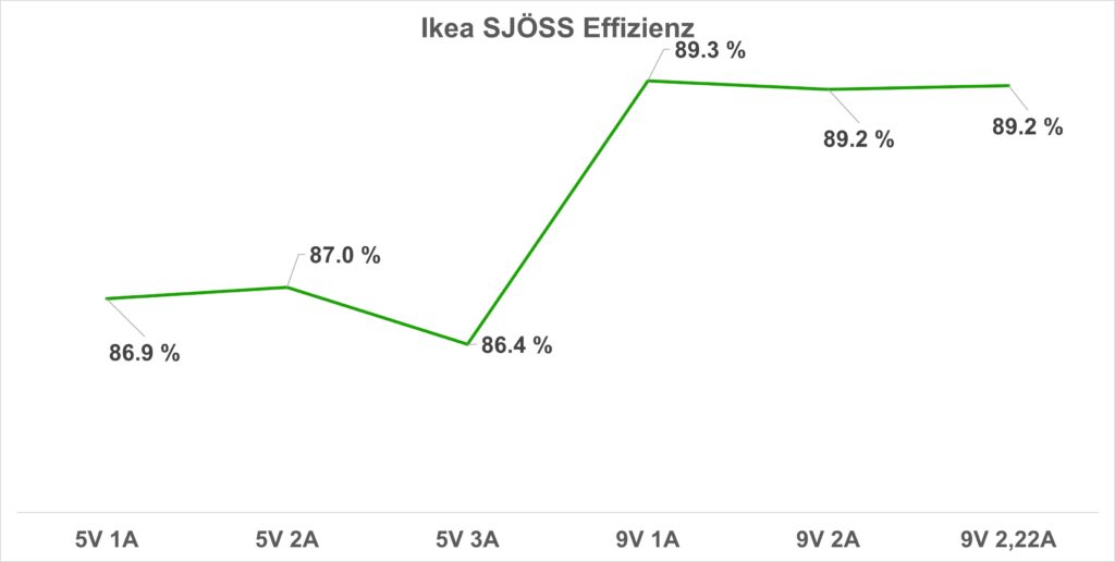 Werfen wir zum Abschluss noch einen Blick auf die Effizienz des SJÖSS 20 W.