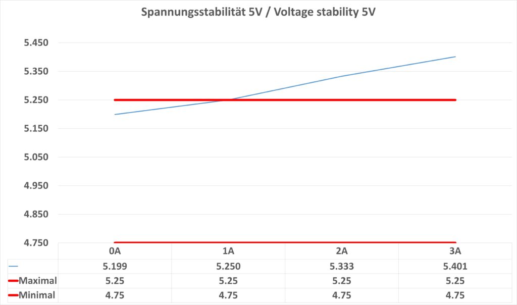 Bei der Spannungsstabilität leistet sich das Ladegerät einen kleinen „Fehltritt“. So war bei mir im Test die Spannung bei der 5-V-Stufe vergleichsweise hoch. So überschritt diese das 5,25-V-Limit der USB-PD-Spezifikation.