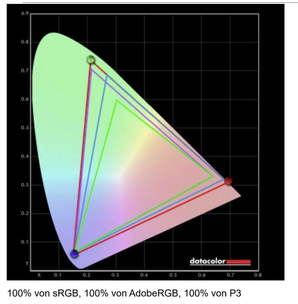 Und WOW! In meinem Test erreichte der Monitor 100 % sRGB, 100 % DCI-P3 und 100 % AdobeRGB.