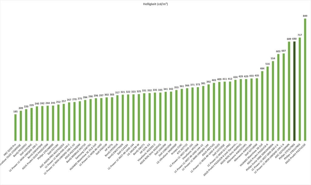 Sollten sich diese Werte auch nur ansatzweise bewahrheiten, dann würde der 27E3U7903 sogar viele OLED-Monitor übertreffen.