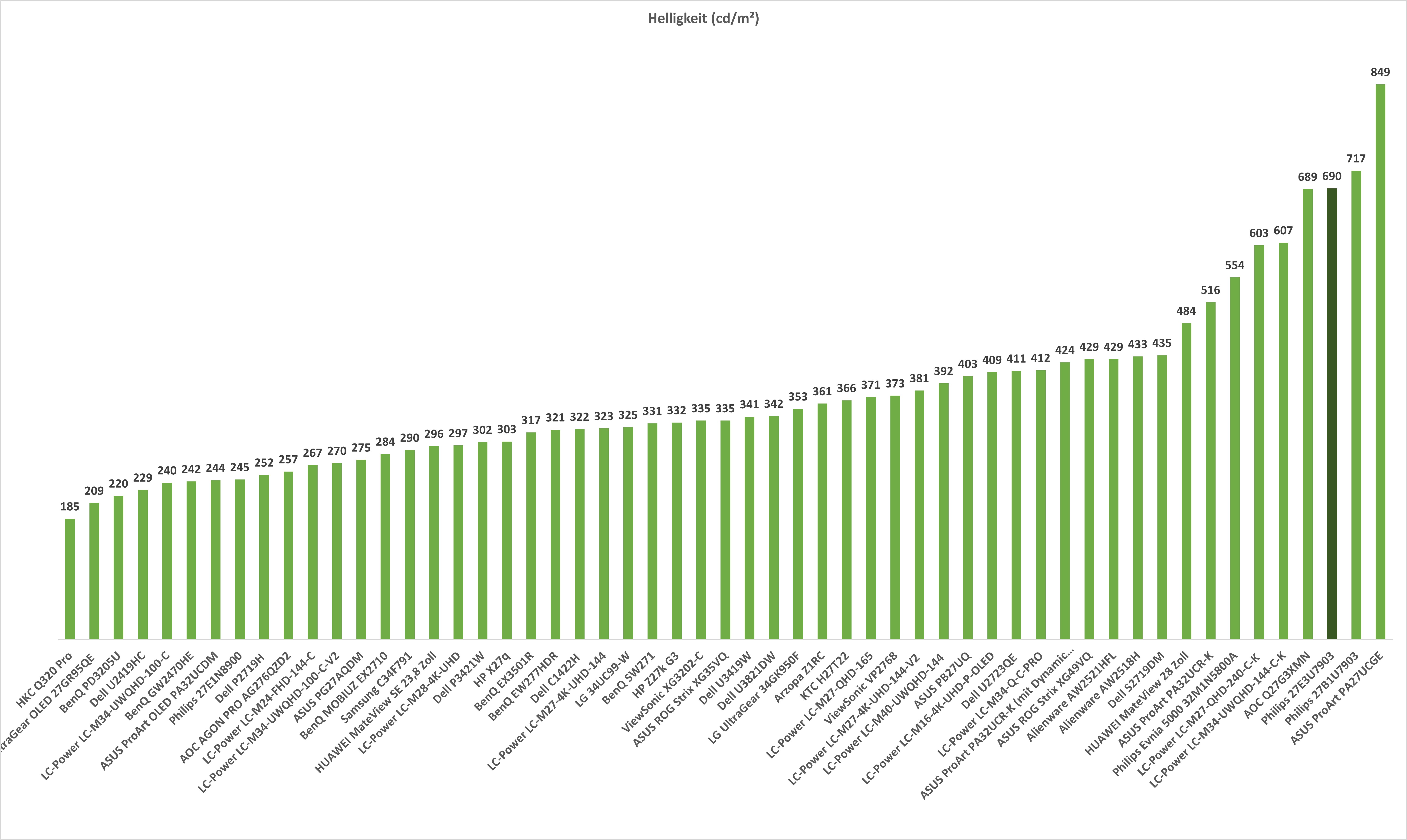 Umso erstaunlicher, dass der 27E3U7903 die Herstellerangabe ein gutes Stück übertrifft! So konnte ich in der Bildmitte 690 cd/m² messen, WOW!