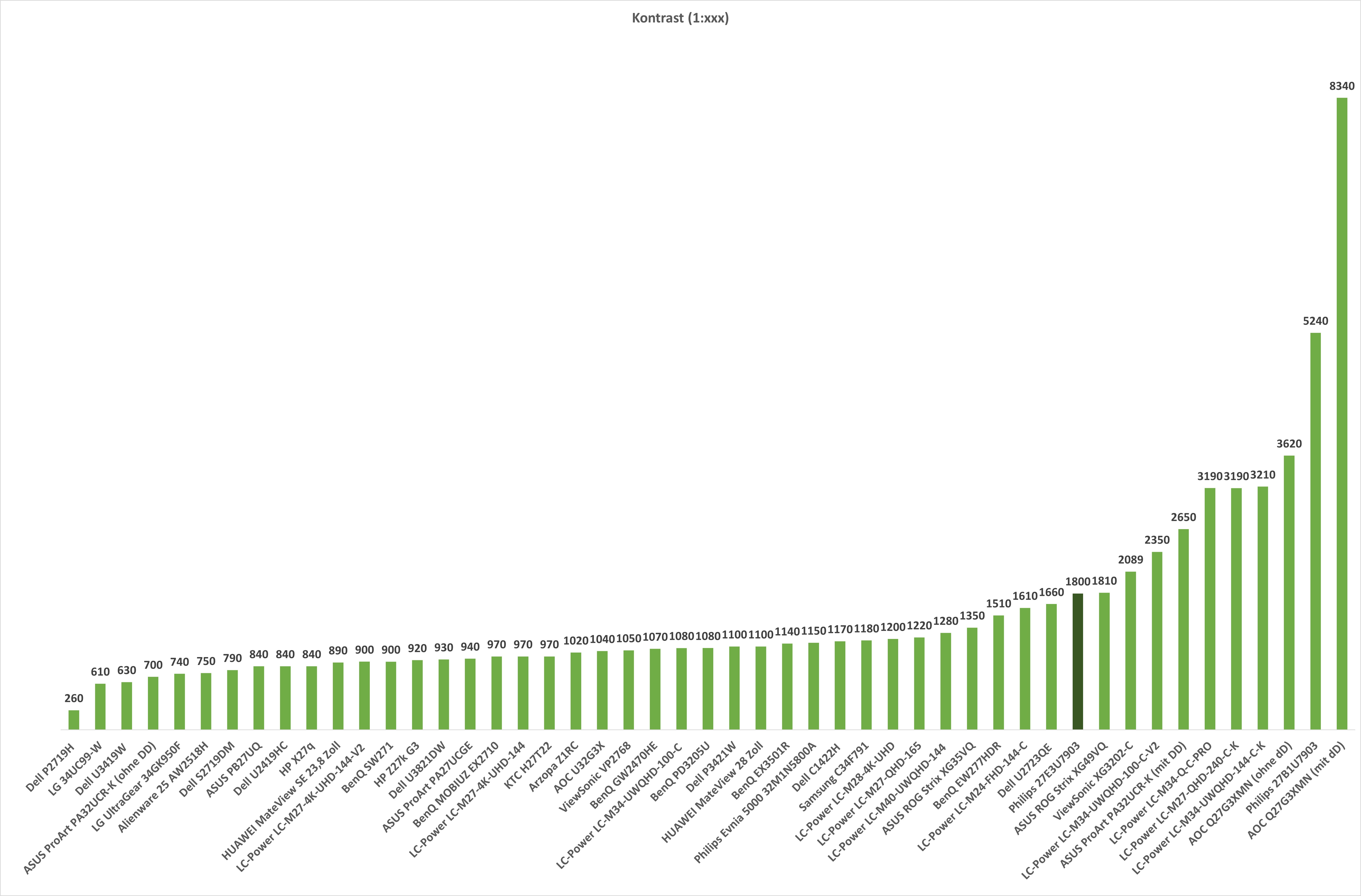 Der größte Nachteil von IPS-Panels ist traditionell der Kontrast. Dieser ist zwar deutlich besser als bei TN-Panels, aber schwächer als bei VA-Panels, ganz zu schweigen von OLEDs.