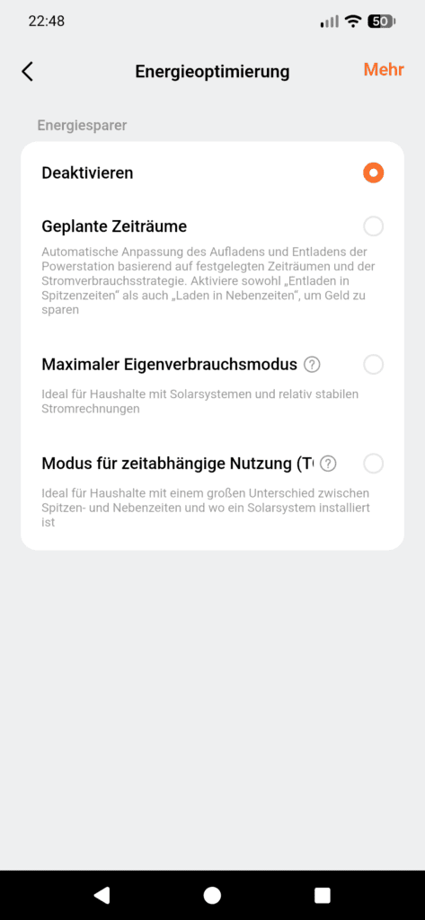 Du kannst auch ein maximales Ladelimit festlegen, die Standby-Zeiten anpassen usw.