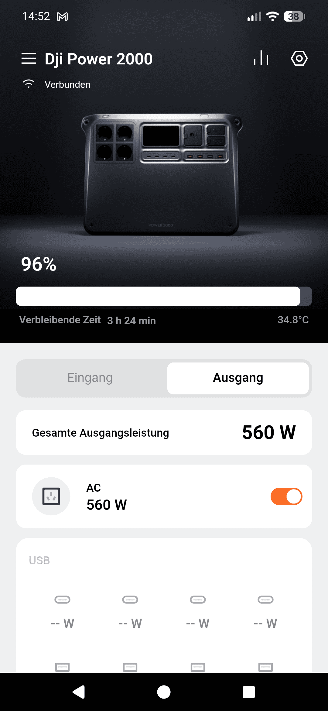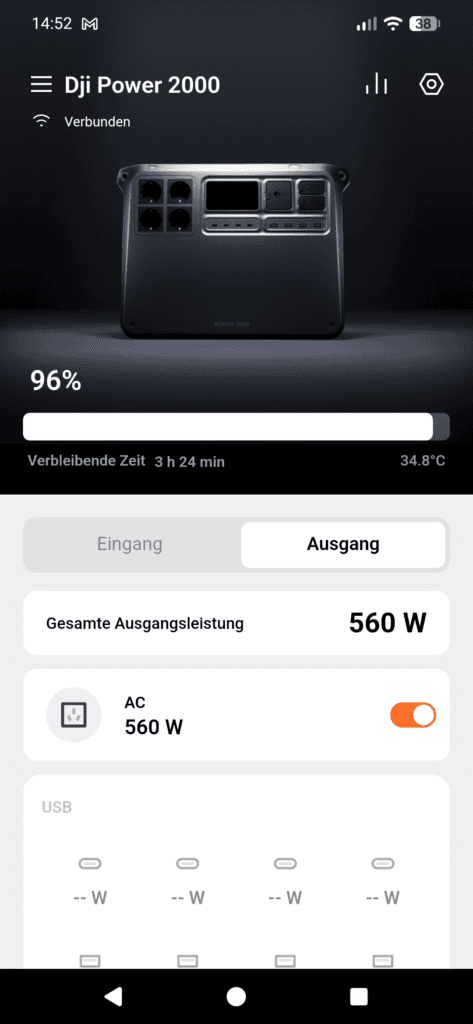 In der App kannst du den Akkustand sehen, welche Leistung über welchen Port rein- und rausgeht usw.