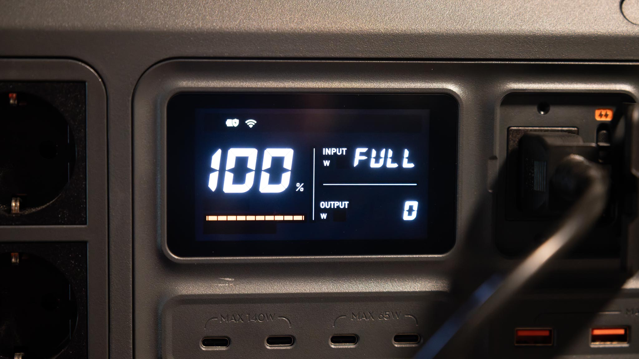 Damit hat die Powerstation ausreichend Power auch für große Notebooks! Und ja, die 140-W-Ports können auch wirklich konstant 140 W bereitstellen.