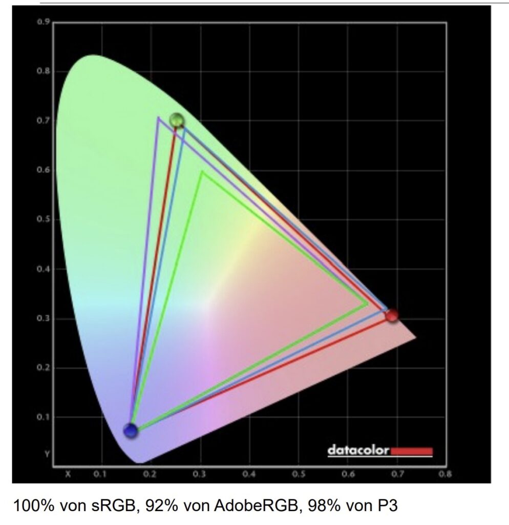 Hier erreichte der BenQ MOBIUZ EX271UZ bei mir 100 % sRGB, 92 % AdobeRGB und 98 % P3 (DCI-P3).