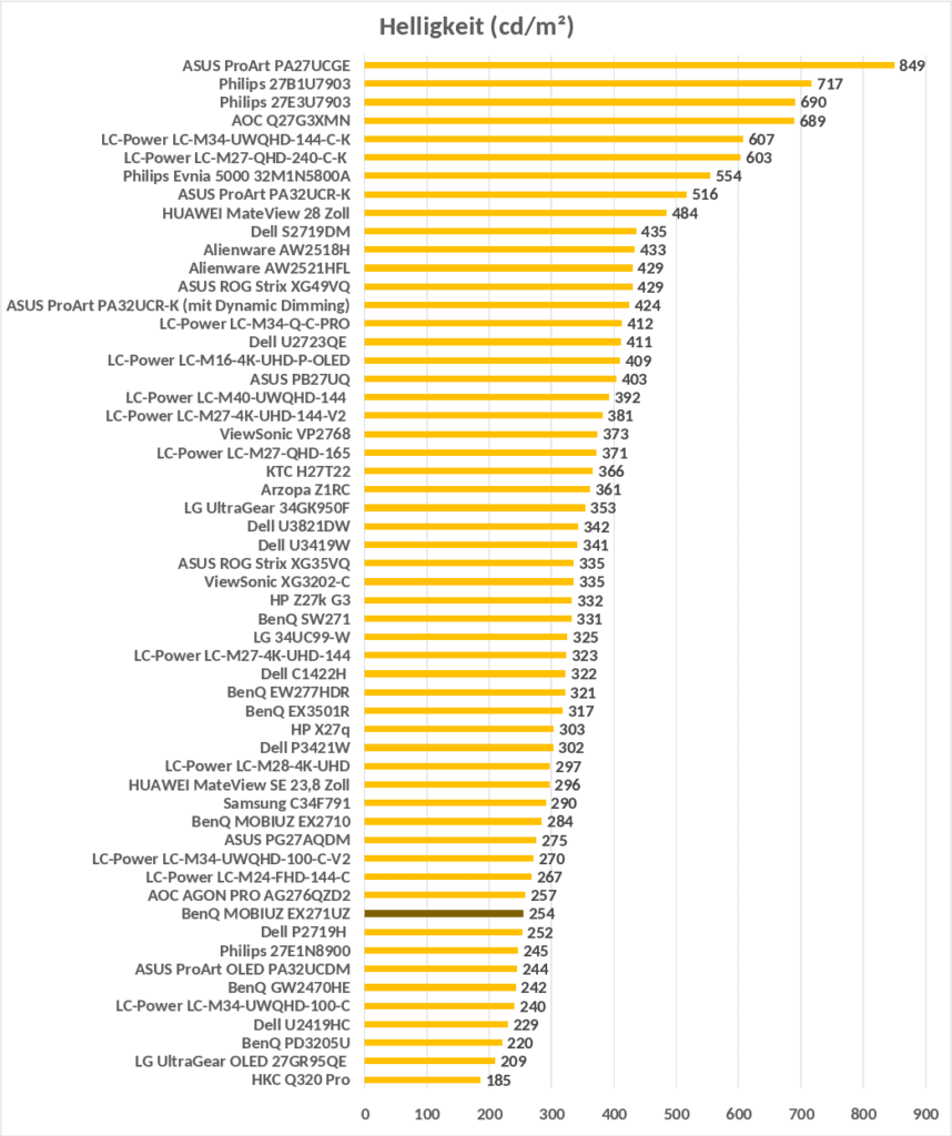 Beim Kontrast kann ich dir keine Messwerte geben. Warum? Der EX271UZ ist ein OLED-Monitor mit Hochglanz-Panel. Sofern kein direktes Sonnenlicht auf dem Monitor steht, hat er einen perfekten Kontrast.