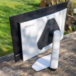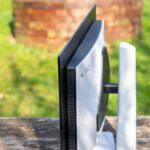 So setzt BenQ bei diesem auf einen schicken Schwarz-Weiß-Look. Pluspunkte gibt es hier für den Standfuß. Dieser erlaubt nicht nur eine Höhenverstellung, sondern nimmt auch recht wenig Platz auf dem Schreibtisch ein. Die Basis des Monitors ist recht klein.