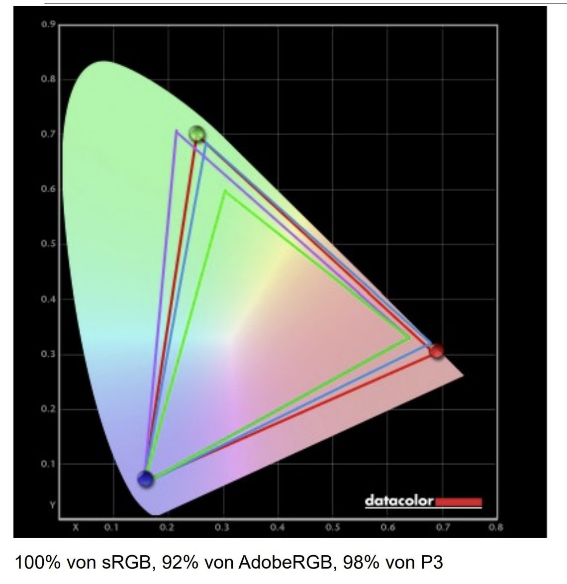 Von Haus aus hat dieser einen ganz leichten Lila-Stich. Grundsätzlich solltest du nach meinen Tests am besten in den DCI-P3-Modus wechseln für die beste Farbgenauigkeit.