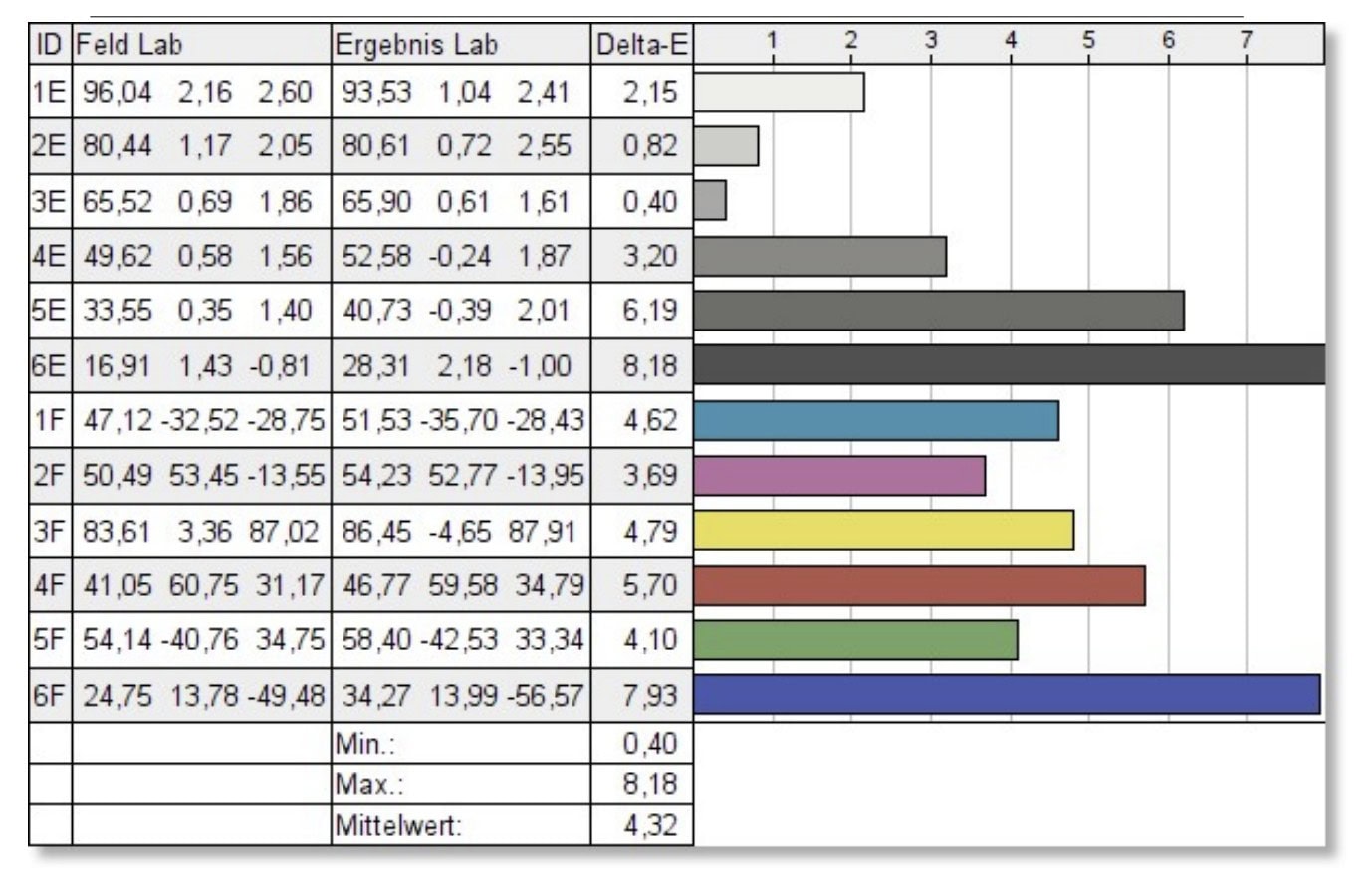 Hier ist dieser mit einem Delta E von 1,23 im Schnitt sehr akkurat kalibriert!