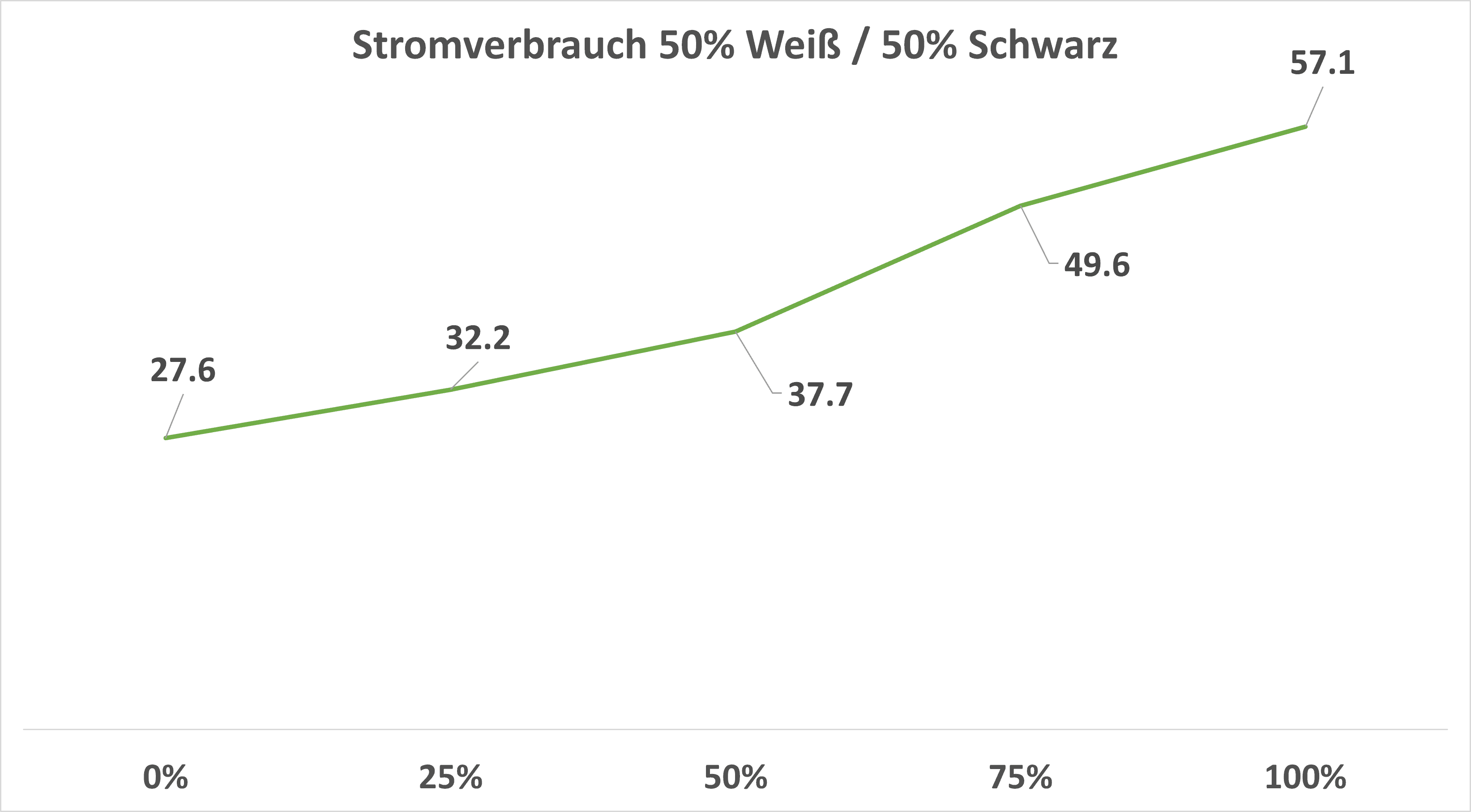 Hier allerdings ein paar Referenzwerte bei einem 50 % Weiß, 50 % Schwarz-Testbild.