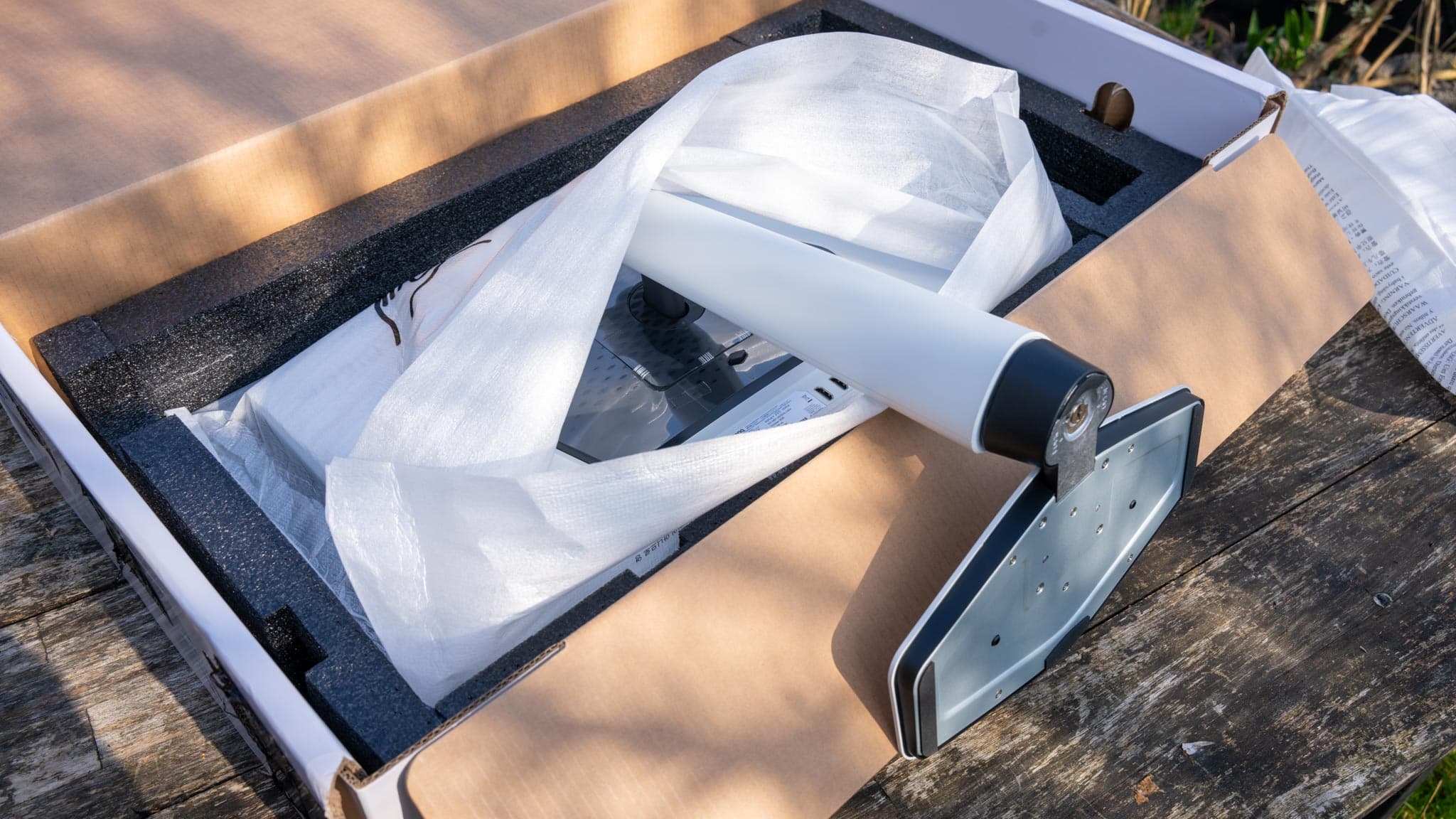 So setzt BenQ bei diesem auf einen schicken Schwarz-Weiß-Look. Pluspunkte gibt es hier für den Standfuß. Dieser erlaubt nicht nur eine Höhenverstellung, sondern nimmt auch recht wenig Platz auf dem Schreibtisch ein. Die Basis des Monitors ist recht klein.