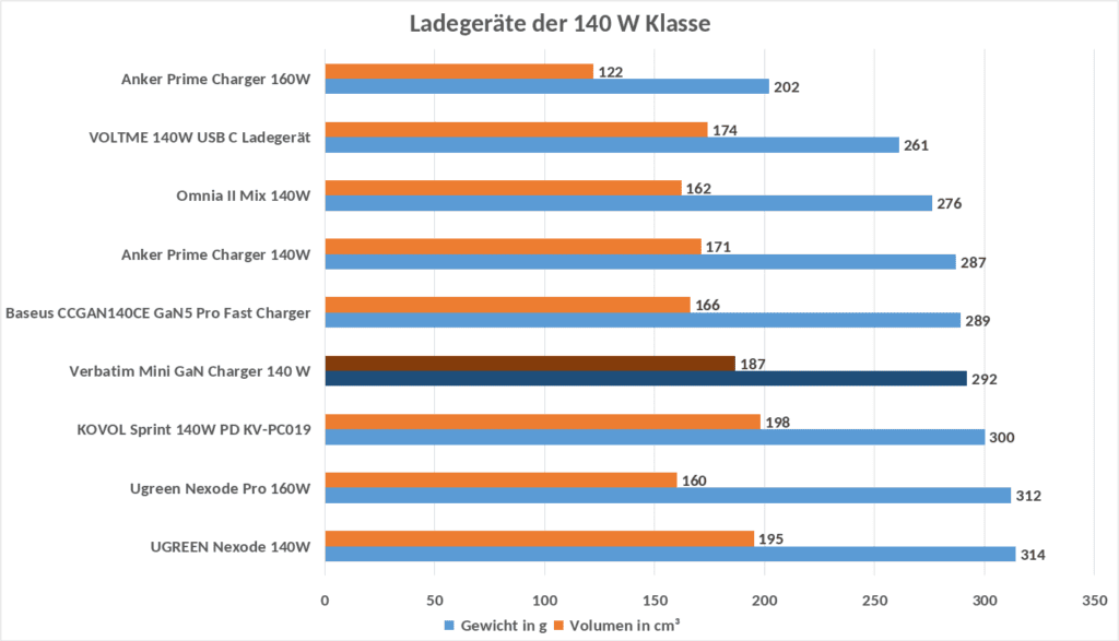 • „Mini“ nur bedingt – es gibt kleinere 140-W-Ladegeräte