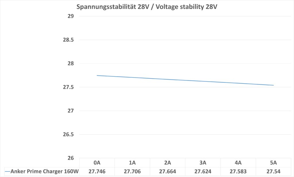 Beim Belastungstest gab es eine große Überraschung. So konnte der Prime Charger 160W zunächst konstant 140 W ausgeben!