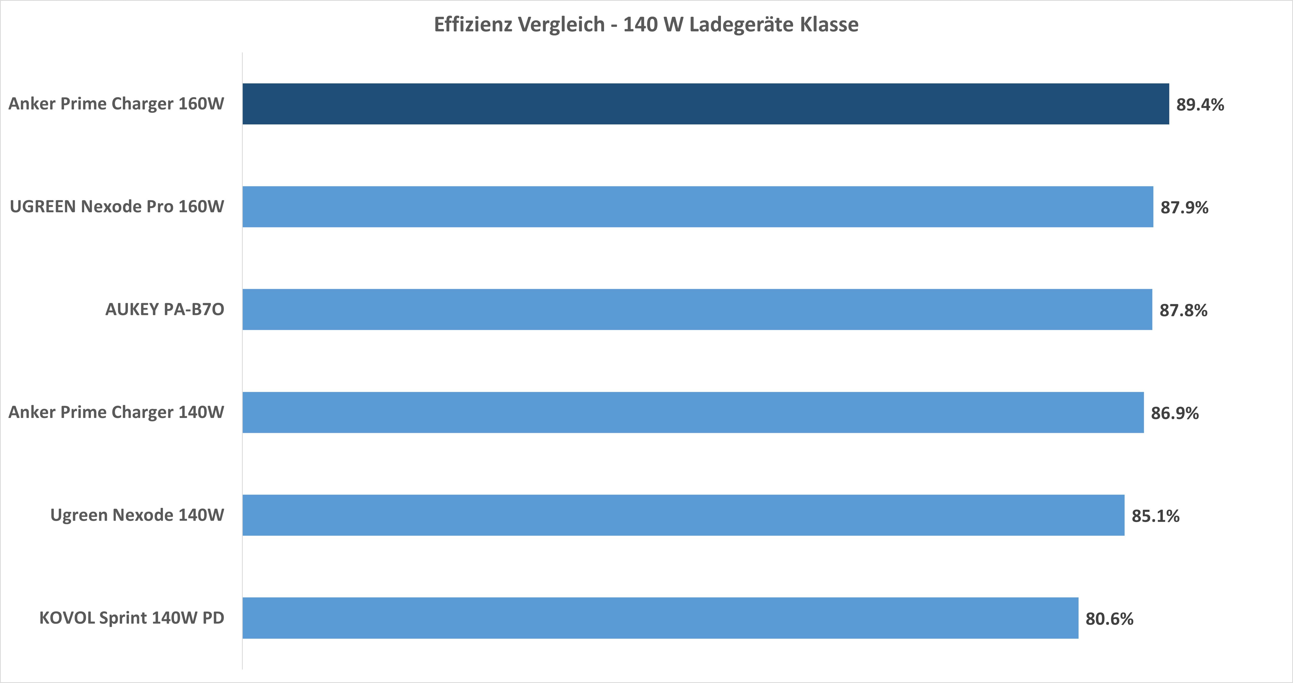 So können wir sehen, dass dies das effizienteste Ladegerät in der 140-W-Klasse ist, das ich jemals im Test hatte, und das sogar deutlich.