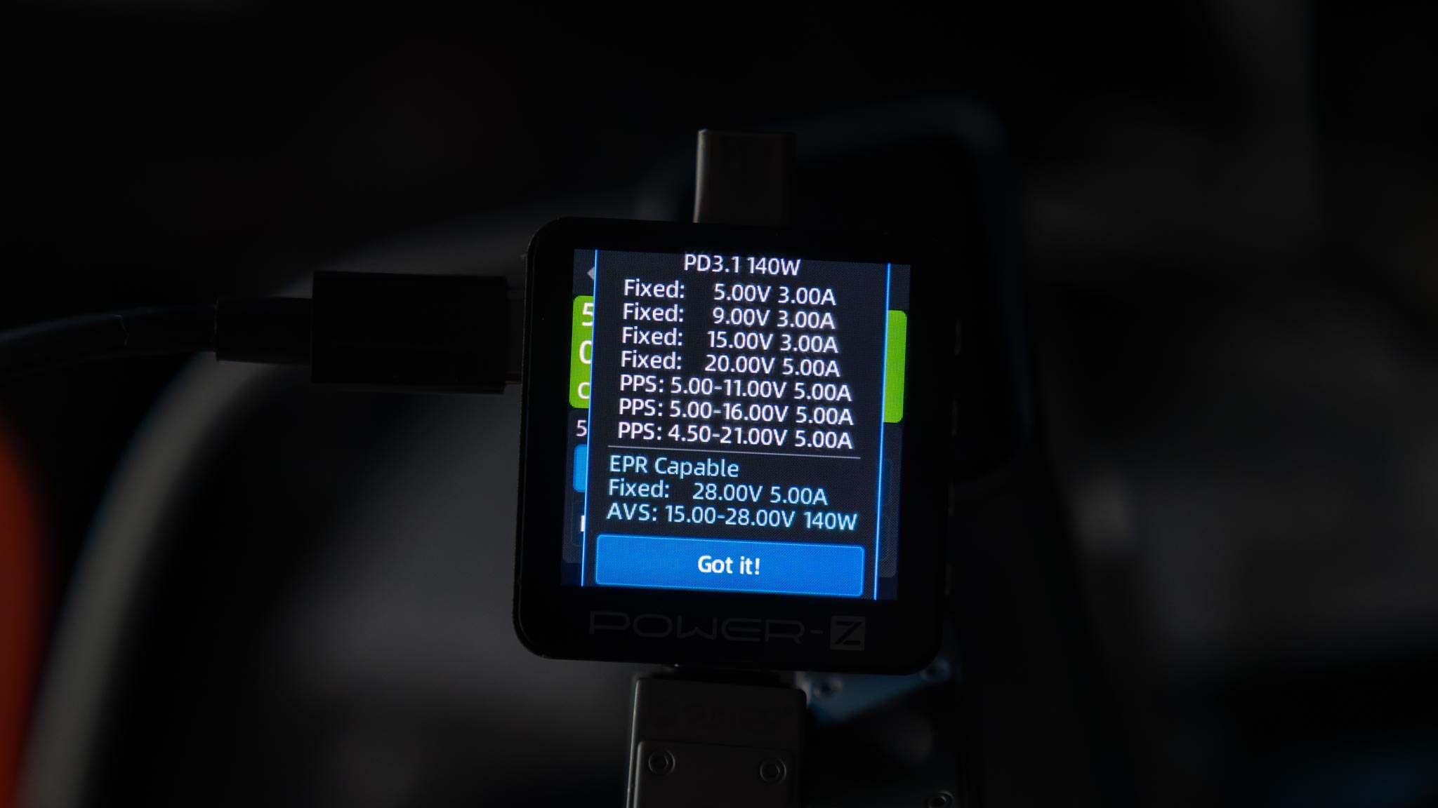 Das Display ist also nicht nur schön, sondern auch wirklich informativ! Gerade wenn du versuchst, Probleme zu diagnostizieren, ist dieses sehr praktisch, auch dass es beim Einstecken anzeigt, was für einen Kabeltyp du nutzt.