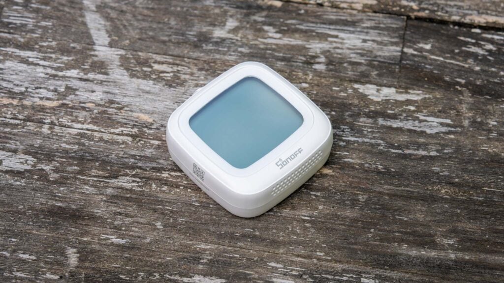 Dieses besitzt auf der Front ein kleines LC-Display und ansonsten ein weißes Kunststoffgehäuse. Am oberen Rand ist ein kleines Loch für einen Aufhänger integriert. Zudem besitzt der SNZB-02WD eine magnetische Rückseite.