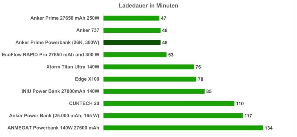 Dennoch ist die Powerbank in gerade einmal 48 Minuten gefüllt!