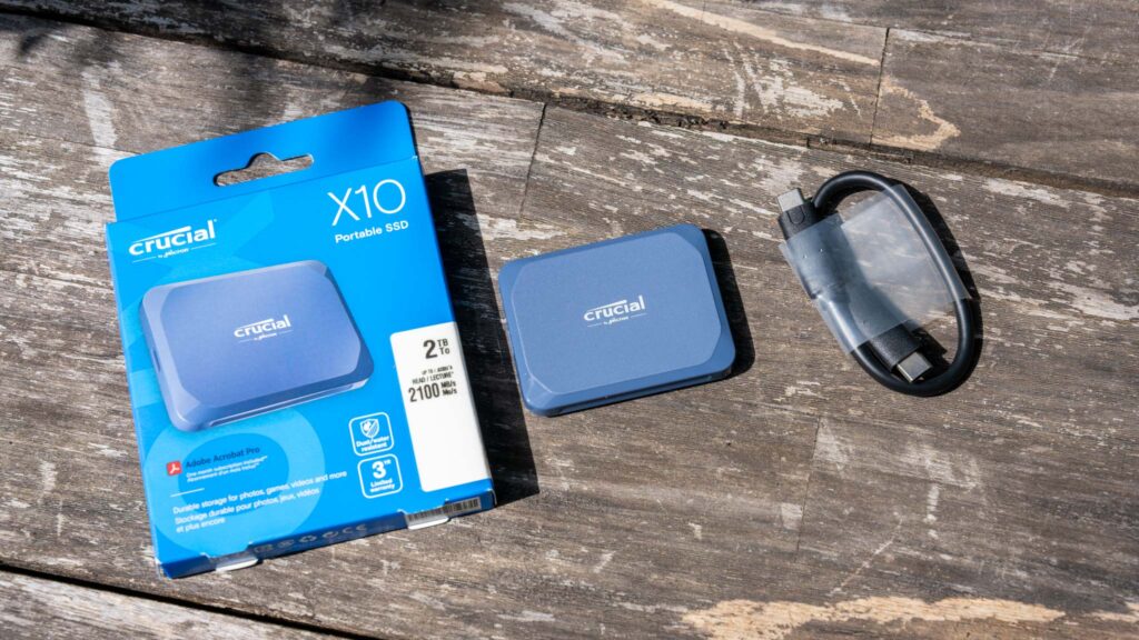 So setzt die Crucial X10 auf eine Mischung aus dem 20-Gbit-USB-C-3.2-2×2-Anschluss und QLC-NAND.