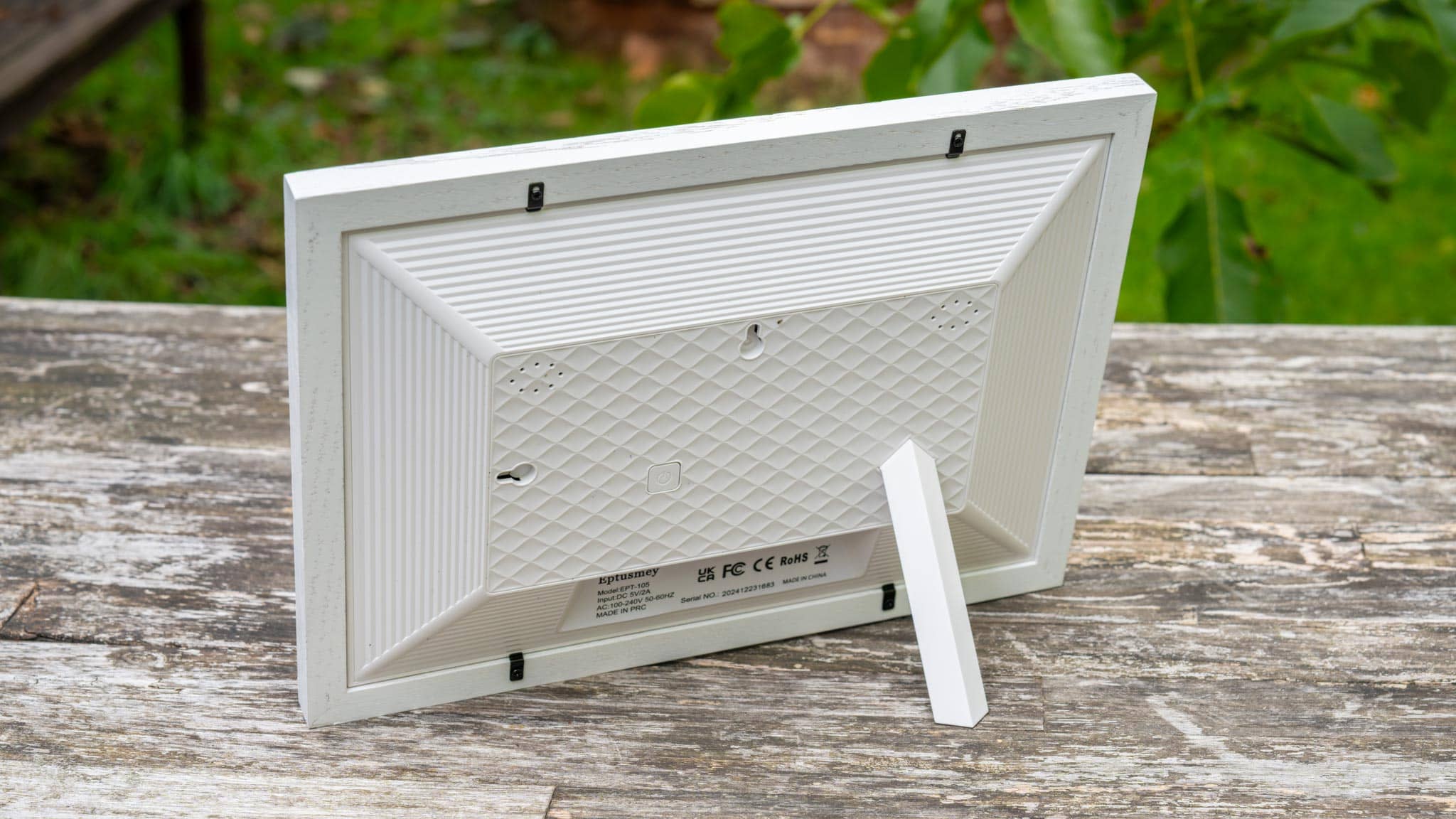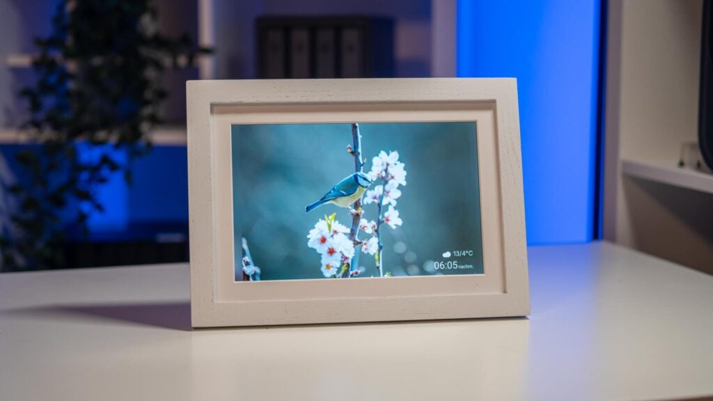 Die Verarbeitung ist insgesamt solide, auch wenn der Holzrahmen eher schlicht ausfällt und Geschmackssache bleibt. Dafür überzeugt der Rahmen mit einer flexiblen Aufstellung, ausreichend Anschlüssen für USB-Sticks und SD-Karten sowie einem großzügigen internen Speicher von 32 GB.