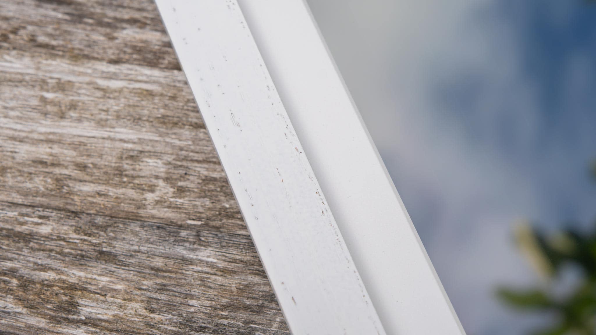 Dabei ist das generelle Design des Eptusmey Bilderrahmens Geschmackssache. Wir haben hier ein 10,1 Zoll Display, welches bilderrahmentypisch über recht dicke Rahmen verfügt. So haben wir einen weißen inneren Rahmen, wie aber auch einen äußeren Rahmen aus Holz.