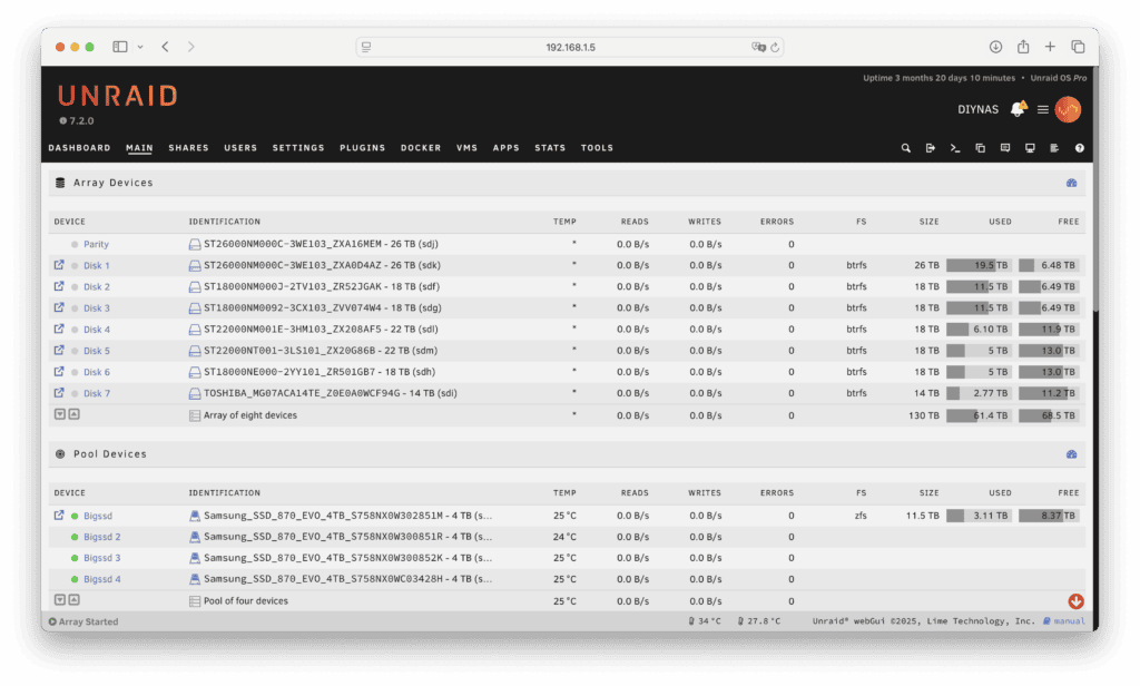 Diese Mischform aus klassischem Unraid-Array und ZFS-Pools ist etwas, das man in dieser Flexibilität bei anderen NAS-Systemen kaum findet.
