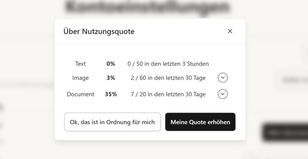 So nutze ich KI beispielsweise für die Rechtschreibkorrektur meiner Texte, und wenn diese zu lang sind, kosten sie „ein Dokument“.