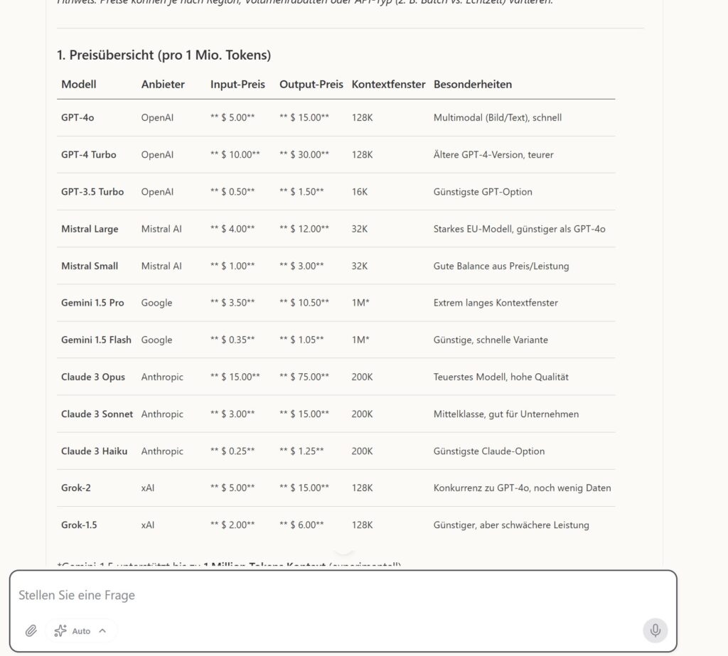 Allerdings ist es da auch nicht so leicht, das passende Modell zu wählen. Claude ist am klügsten, kann aber z. B. keine Bilder usw.