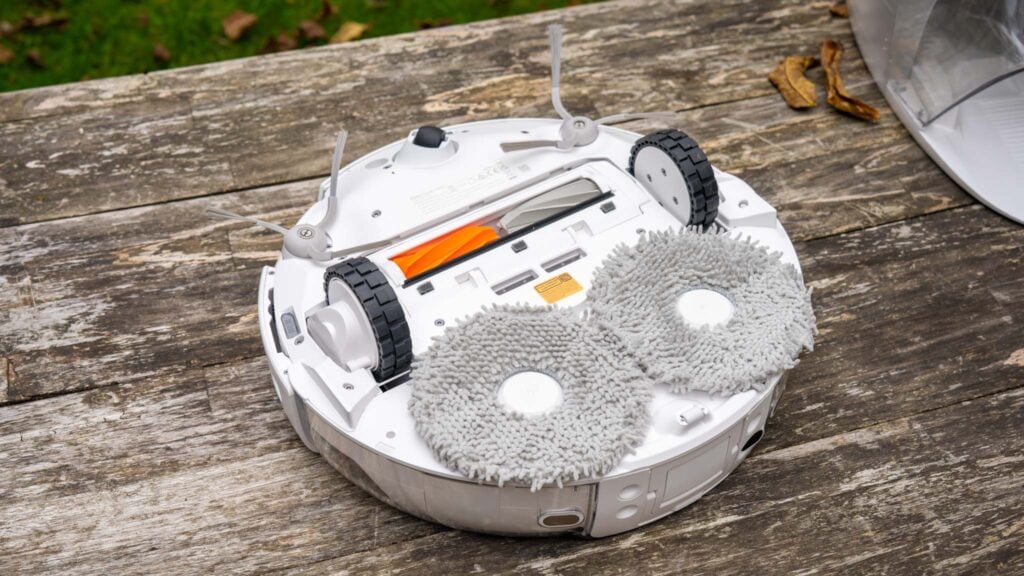 Beim Putzen setzt der DJI ROMO auf ein etwas „klassischeres“ Setup als seine Konkurrenten. So besitzt der ROMO 2x rotierende Pads, wie auch einen Wassertank. Dieser Wassertank feuchtet die Pads unterwegs nach.