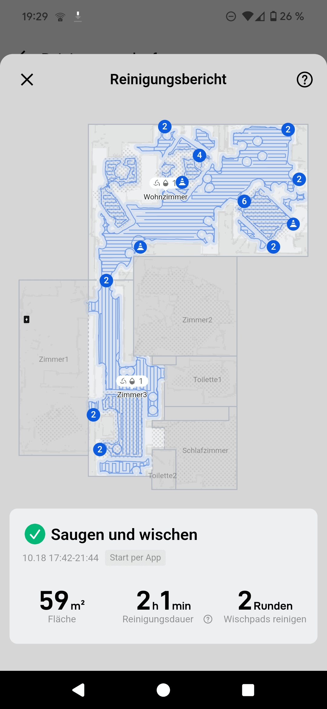 Was für Funktionen „fehlen“? Ich konnte keine Option für die Reihenfolge entdecken, in welcher der Roboter Räume abarbeitet. Das wäre so das Größte, was mir aufgefallen war.