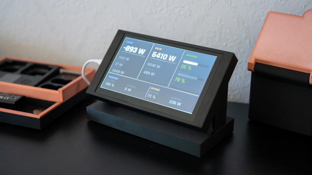 Der Touchscreen ist mit Glas bedeckt und besitzt relativ kleine Rahmen, wodurch er sich hochwertig einbauen lässt. Allerdings musst du dir selbst ein Gehäuse bauen! So habe ich mir eines selbst designed und 3D-gedruckt.
