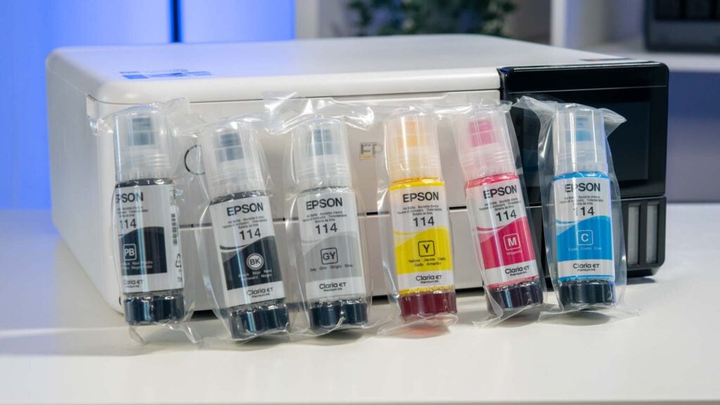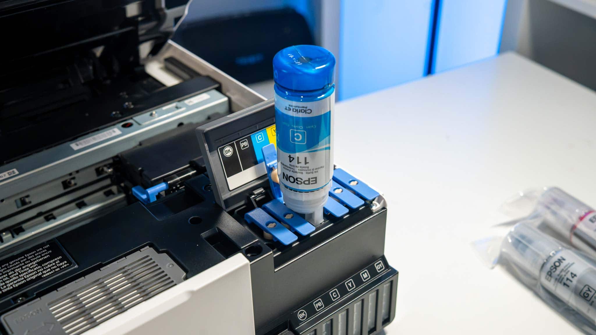 Epsons EcoTank-Serie ist eine hervorragende Wahl, wenn es um günstige Tinte geht. Anstelle dessen, dass hier Patronen genutzt werden, füllst du flüssige Tinte in Tanks.