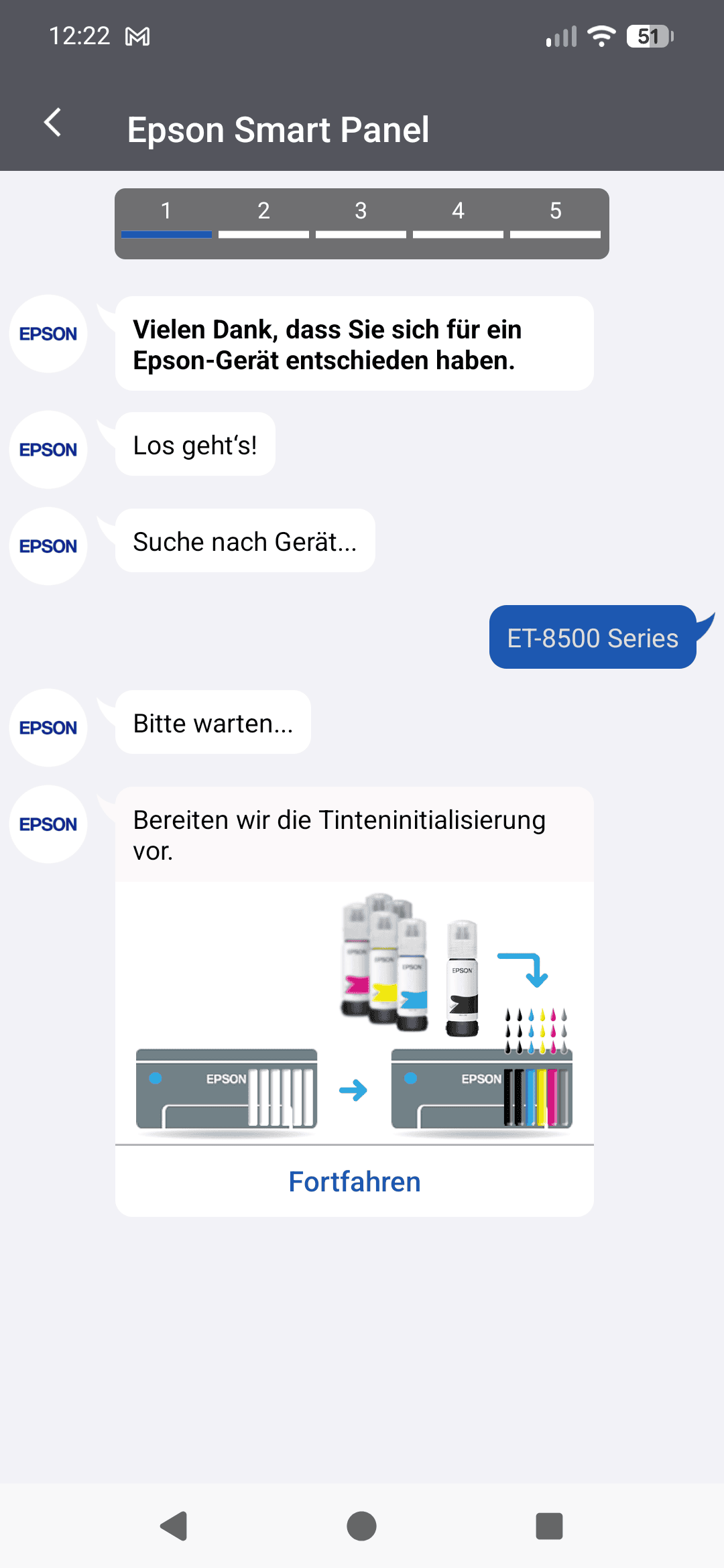 Die Epson Smart Panel App führt dich durch die komplette Einrichtung des Druckers – vom Einfüllen der Farbe über die Kalibrierung bis hin zur Einbindung in dein WLAN. Dies dabei auch auf eine sehr freundliche und klare Art.