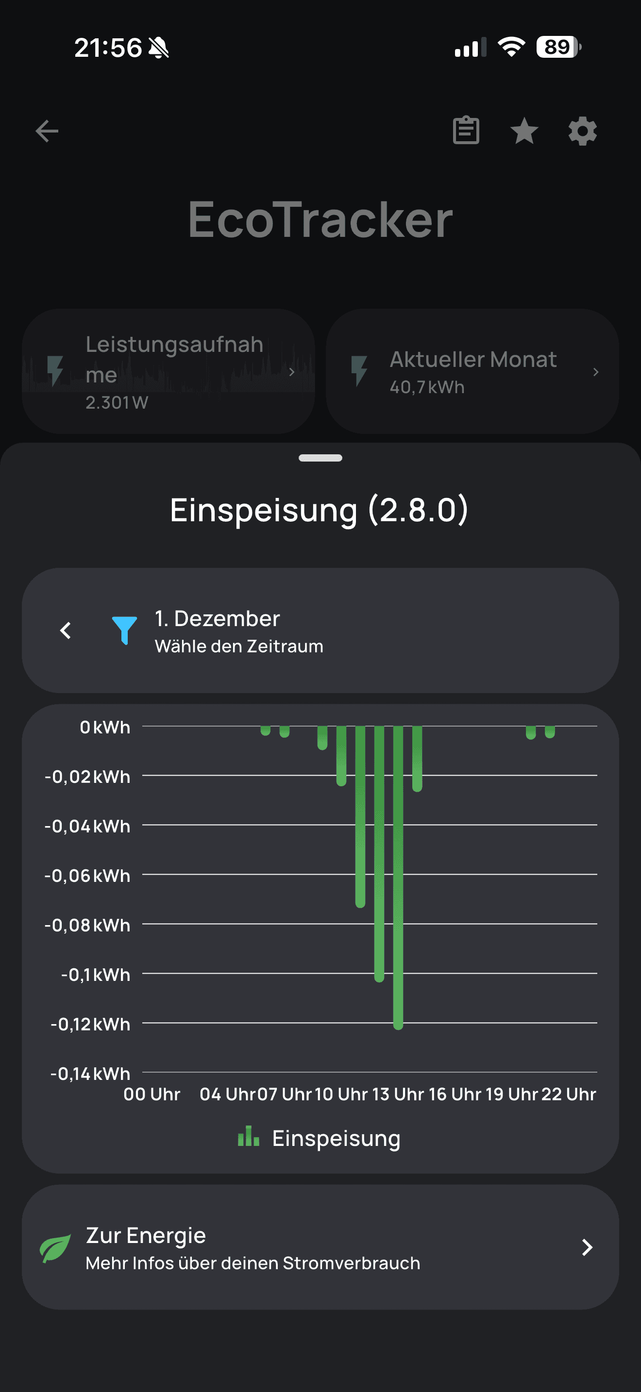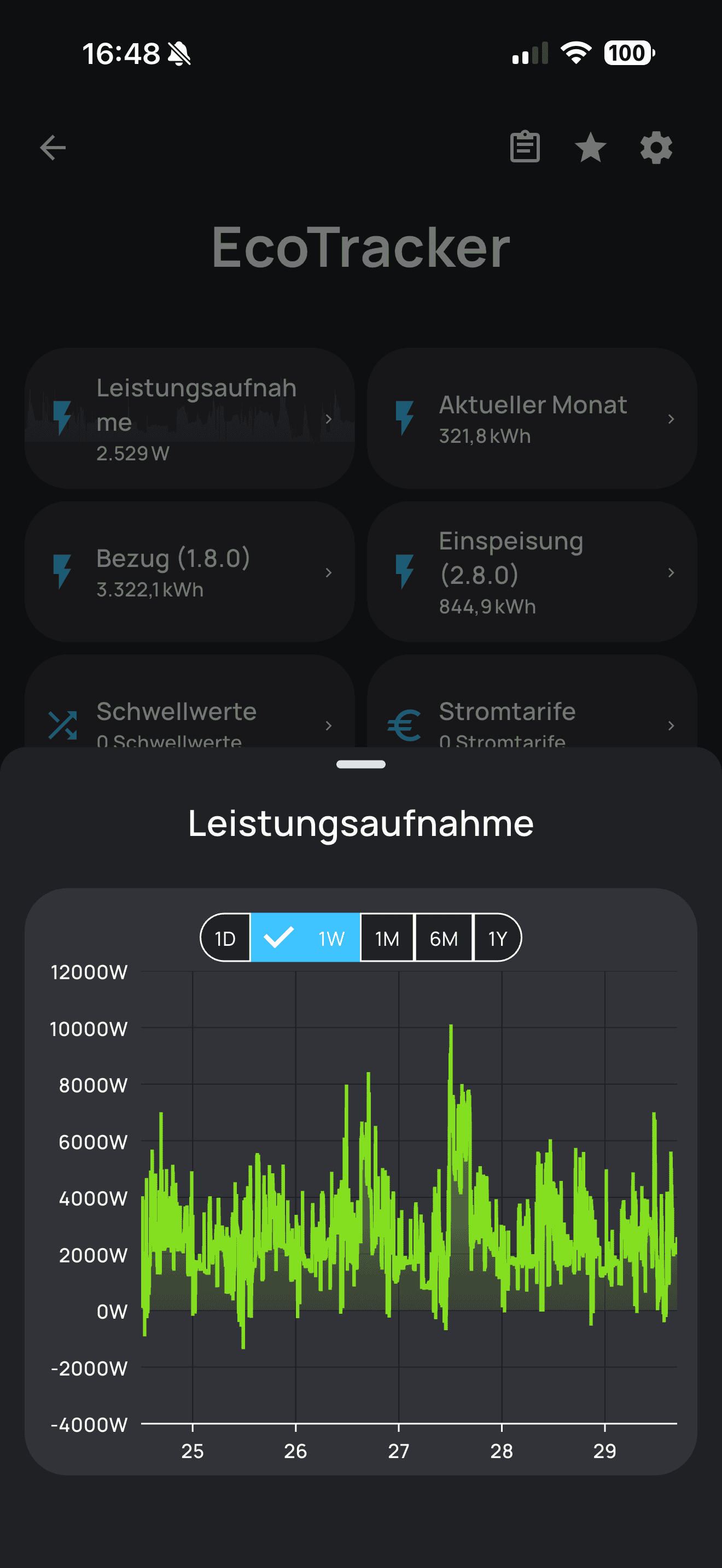 Du hast zudem die Möglichkeit, einen Stromtarif zu hinterlegen, dann werden dir auch direkt Kosten in der App angezeigt.