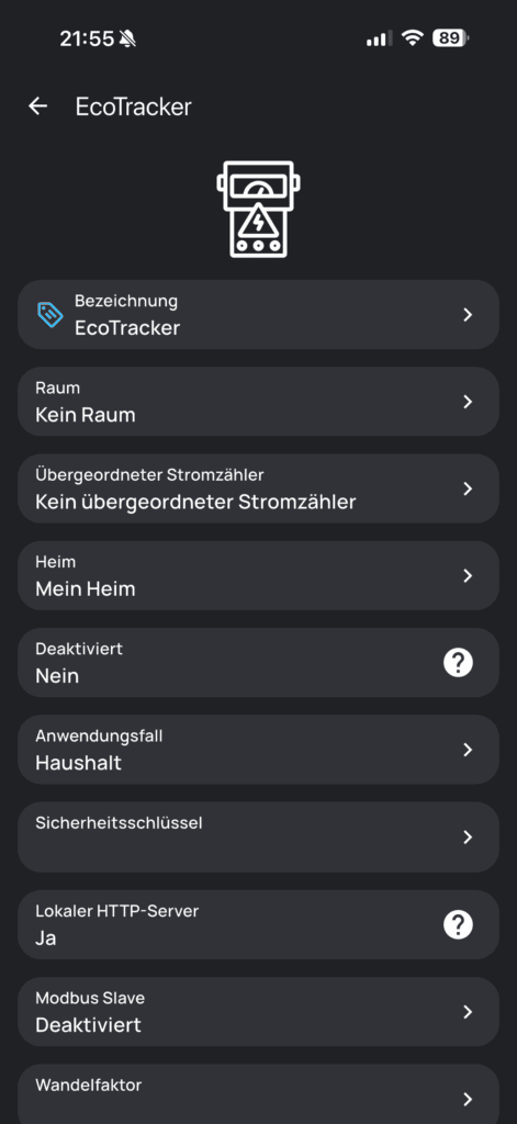Der everHome EcoTracker IR verfügt über einen lokalen HTTP-Server „http://192.168.xxx.xxx/v1/json“, welcher für eine lokale Datenabfrage genutzt werden kann, z. B. für den Home Assistant und Ähnliches.