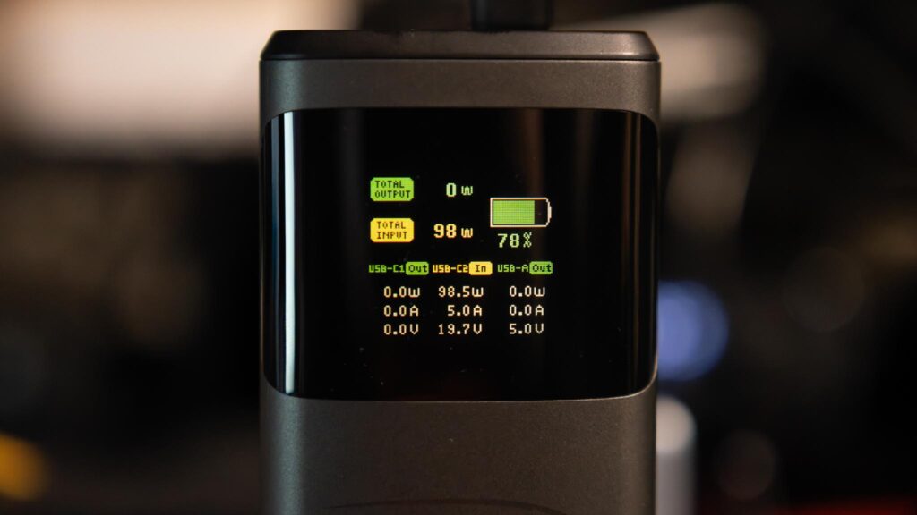 Ganz ohne Kritik kommt das Gesamtpaket aber nicht aus. Die Baugröße ist relativ wuchtig, und einige technische Details wirken unnötig limitiert, etwa die 94 W auf der 20-V-Stufe. Auch die gemessene nutzbare Kapazität von teils nur rund 70 % fällt für diese Klasse eher durchschnittlich aus. Dass die 140 W nicht über den gesamten Ladebereich konstant anliegen, ist zwar kein Einzelfall, bleibt aber dennoch ein kleiner Dämpfer.
