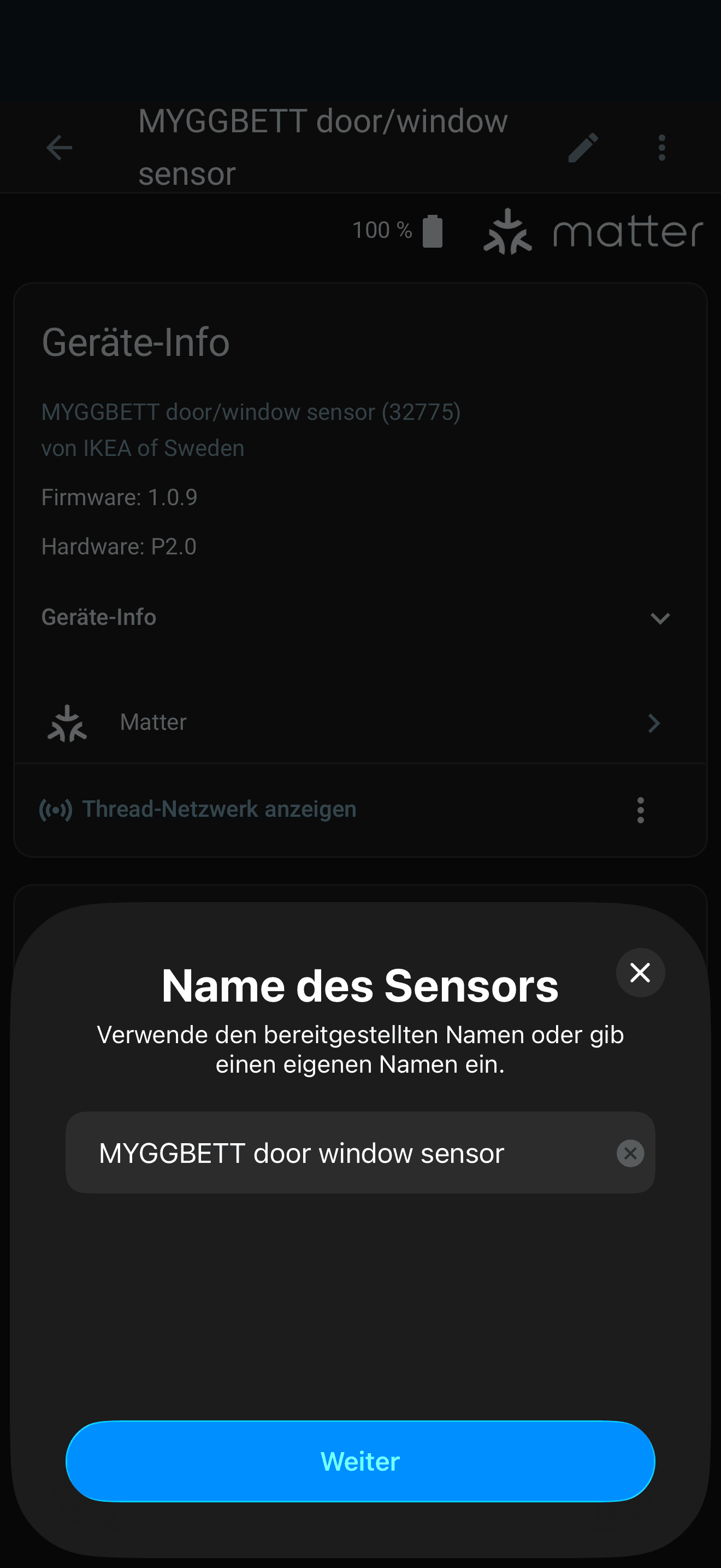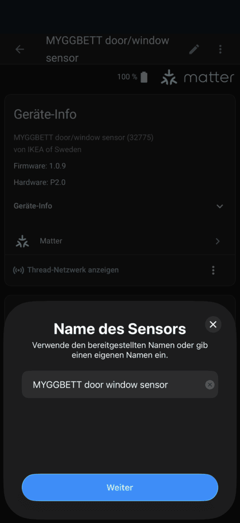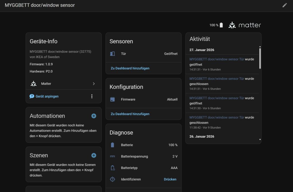 Ich glaube nicht zwingend, dass dies ein Problem des MYGGBETT Sensors im Speziellen ist. Ich habe das Gefühl, Matter over Thread ist noch etwas unausgereift.