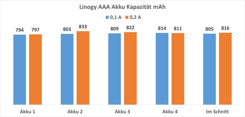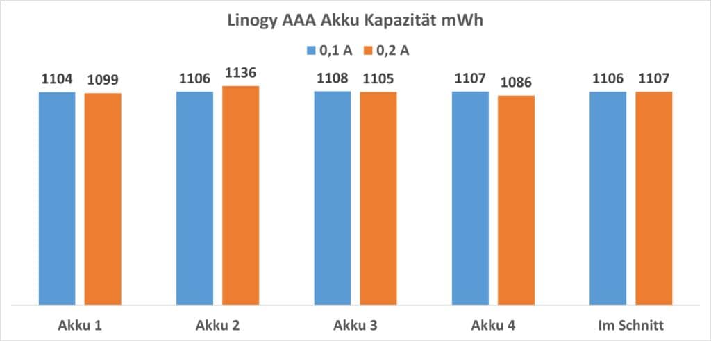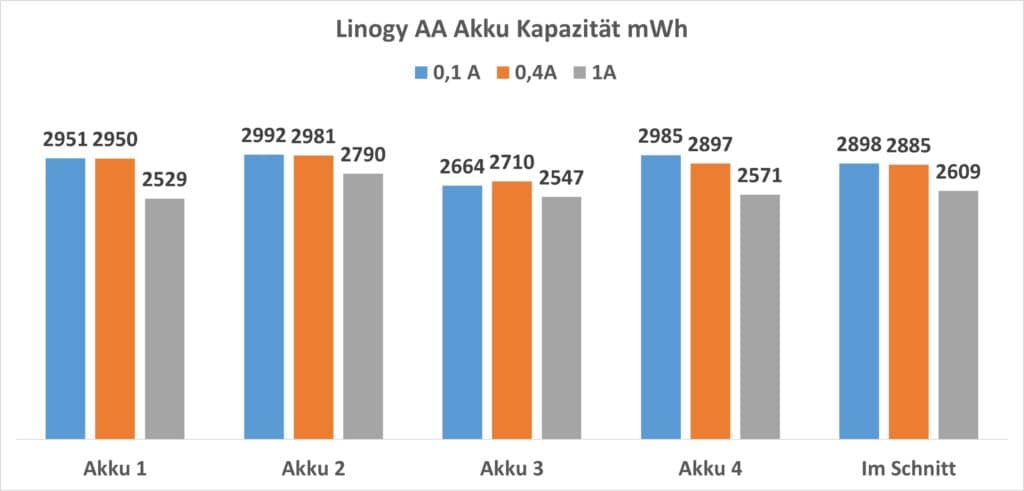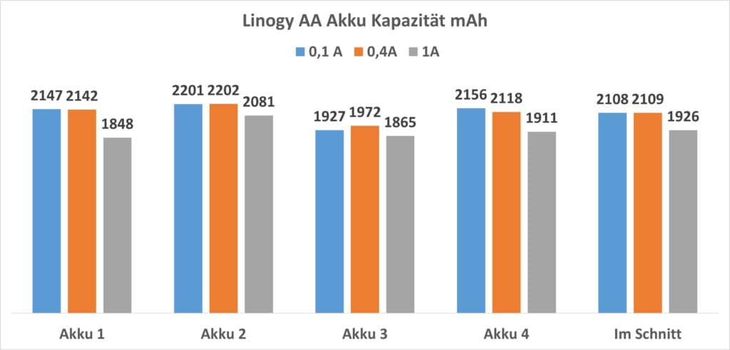 Welche Kapazität erreichten nun die Linogy-AA-Akkus?