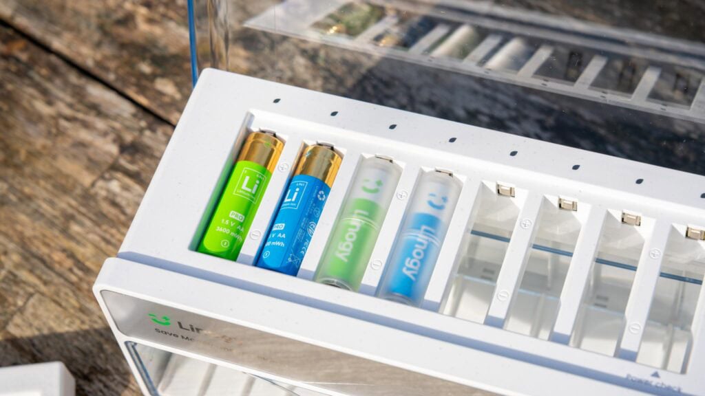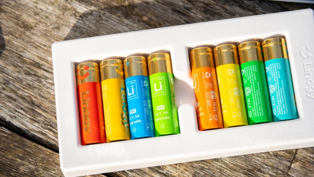 Das Linogy-Ladegerät kann dabei nicht nur die Linogy-eigenen Lithium-Akkus laden, sondern auch viele 3.-Anbieter-Lithium-AA-Akkus wie auch klassische NiMH-Akkus.