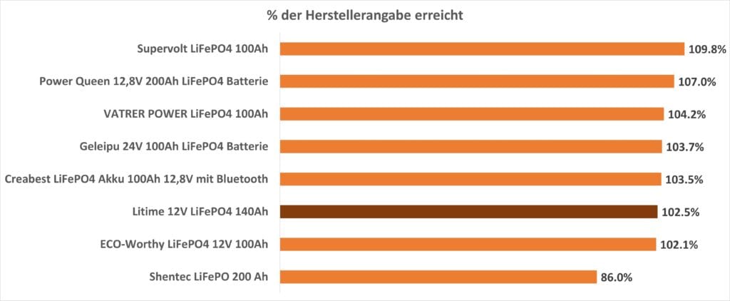 Im Vergleich zu anderen LiFePO4-Akkus sehen wir, dass dies ein prozentual durchschnittliches Abschneiden ist.
