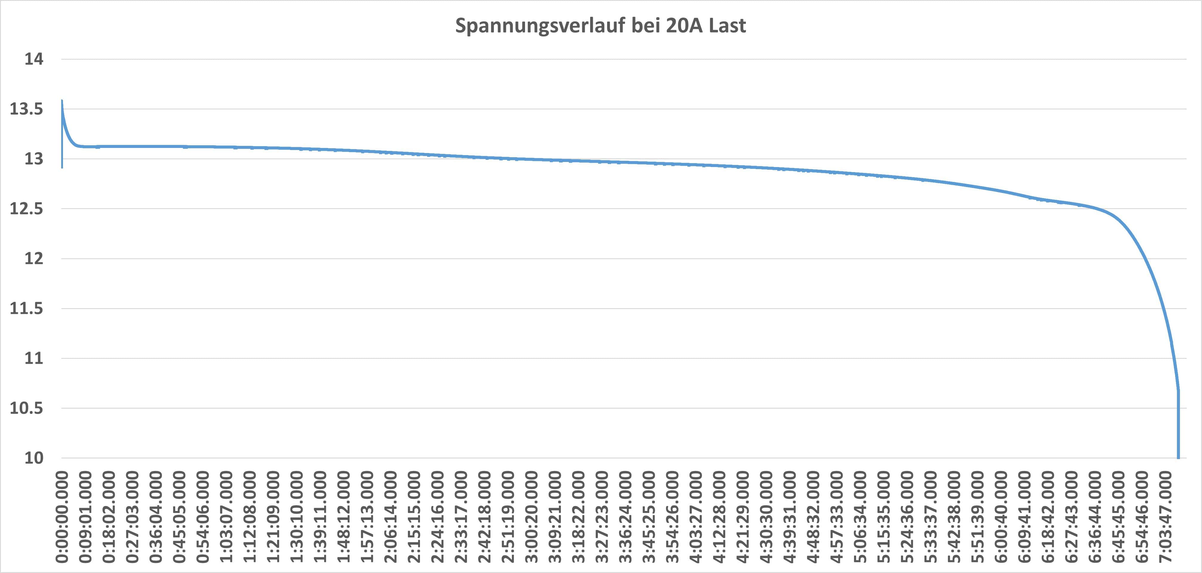 Dieser ist wie bei den meisten LiFePO4 sehr flach! Gefühlt hier sogar noch etwas flacher als bei einigen Konkurrenten.