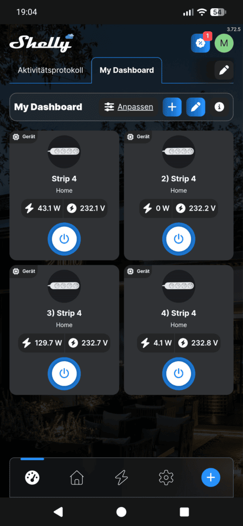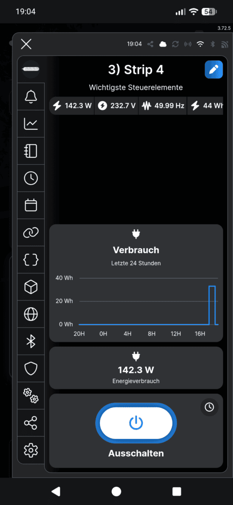 An sich ein Aufbau, gegen den ich nichts habe, ganz im Gegenteil, ich finde es super, dass sich jede Steckdose komplett einzeln steuern und überwachen lässt, aber ich hätte es nett gefunden, wenn es in der UI auch einen Tab für alle Steckdosen gemeinsam gäbe, beispielsweise der kombinierte Verbrauch usw.