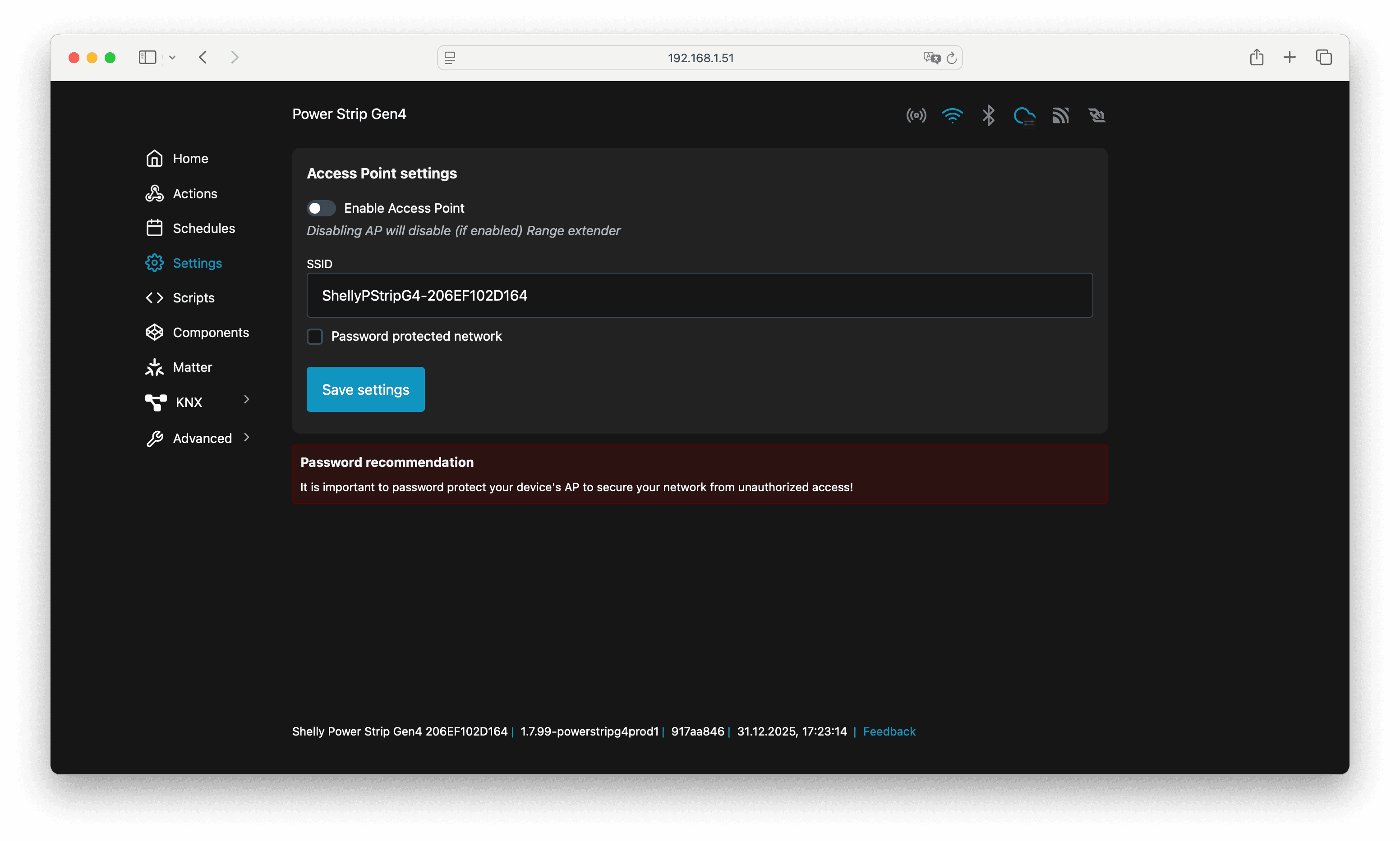 Entsprechend sollte der Shelly Power Strip 4 Gen4 auch voll funktionsfähig bleiben, sollte der Hersteller mal den Support einstellen.