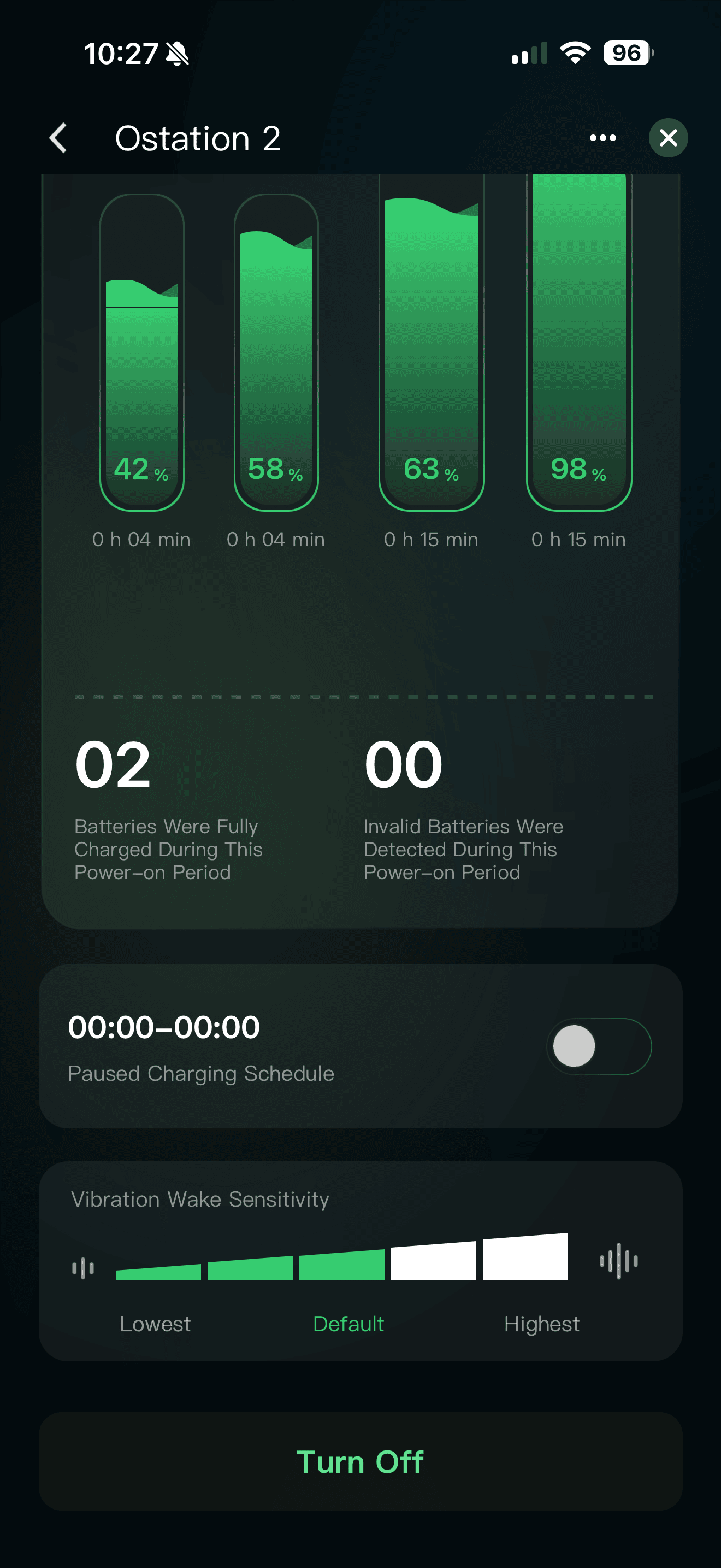 Die Ostation 2 unterstützt auch die Olight App. Die Olight App ist etwas verschachtelt und offen gesagt nicht ganz so nützlich, wie ich gehofft habe. So kannst du in der App einfach nur sehen, wie der Ladestand der aktuell ladenden Akkus ist.