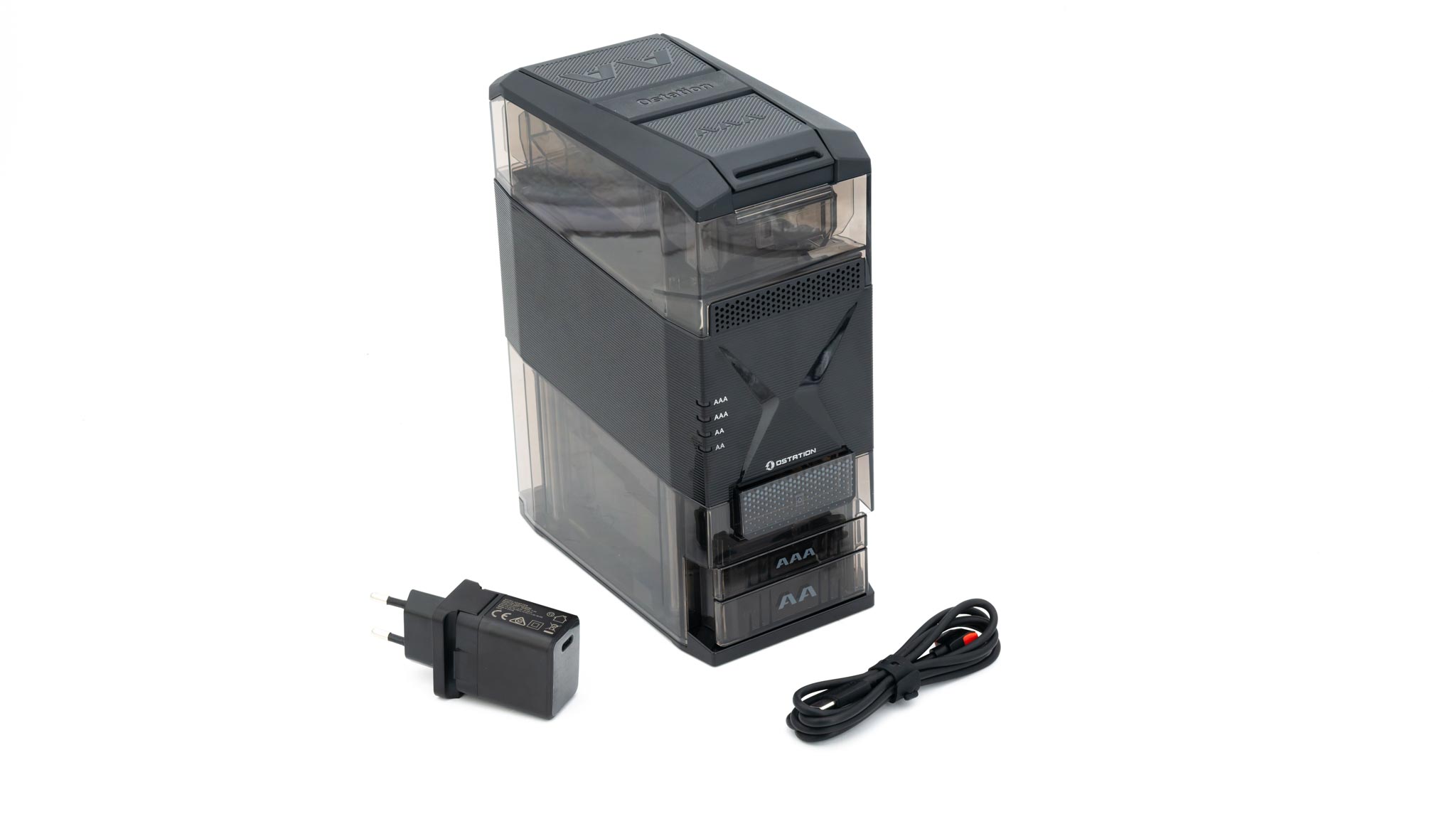 Du kannst zwar bis zu 13 AA und 14 AAA Akkus in die Ostation 2 einlegen, aber es werden immer nur 2x AA und 2x AAA Akkus auf einmal geladen. Sind diese geladen, holt sich die Ladestation automatisch die nächsten Akkus und arbeitet diese so nacheinander ab.