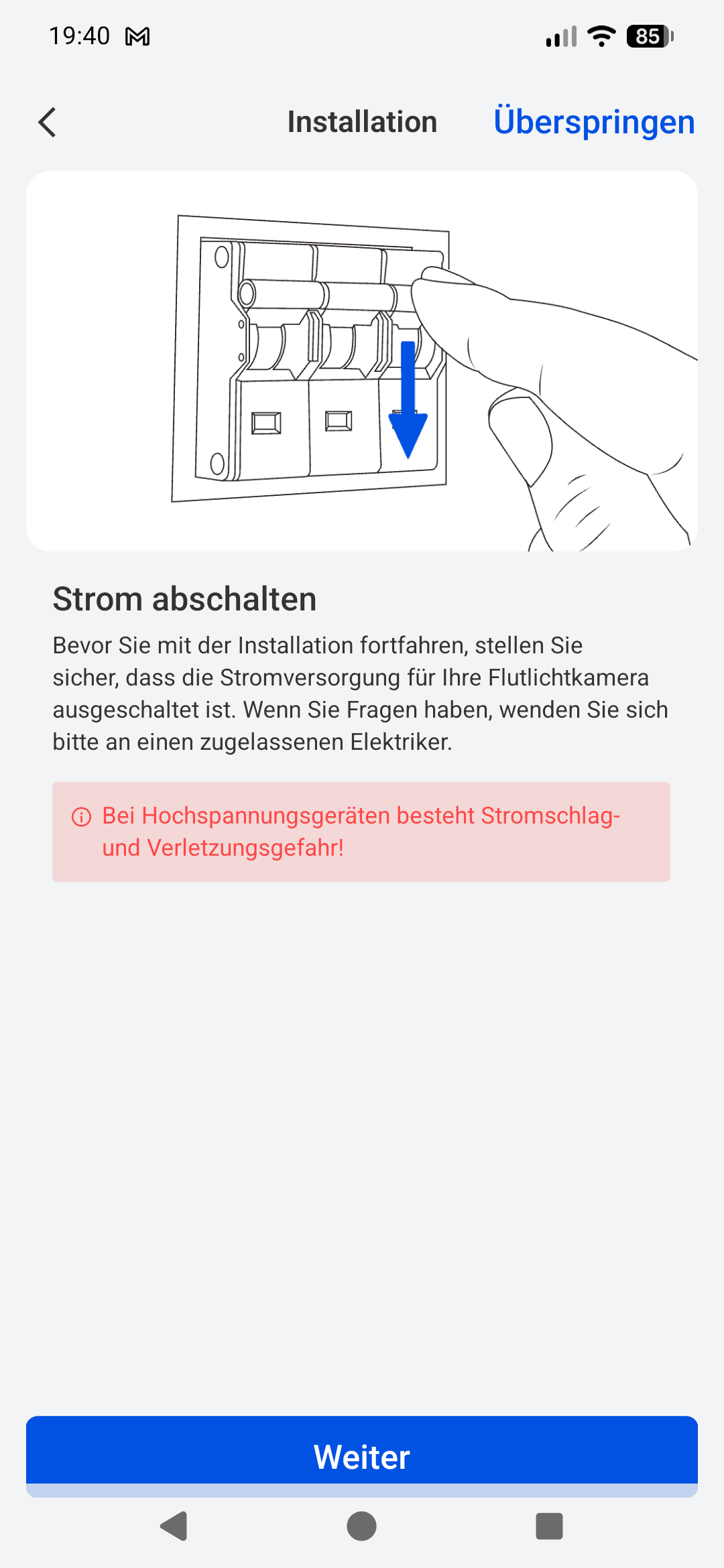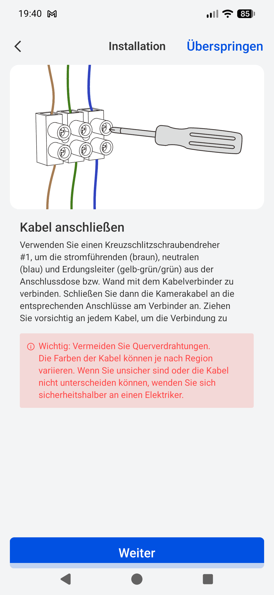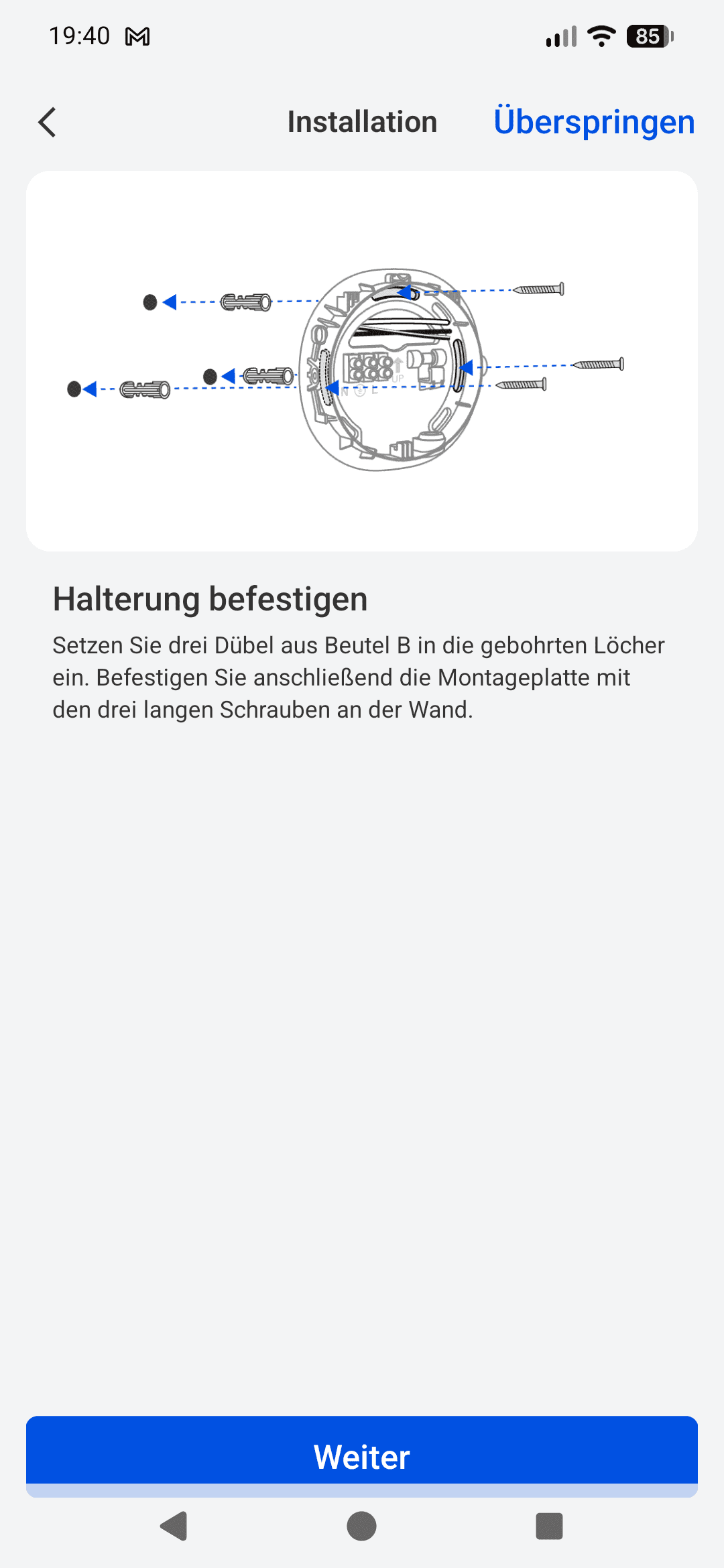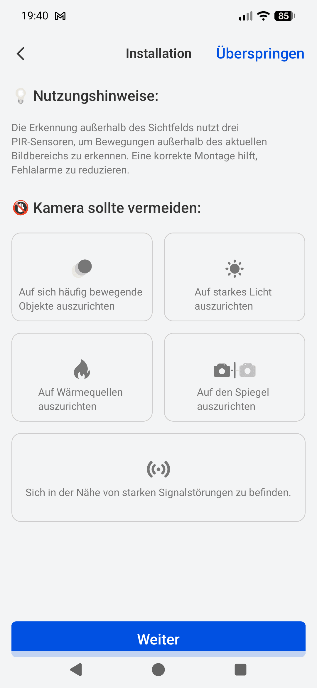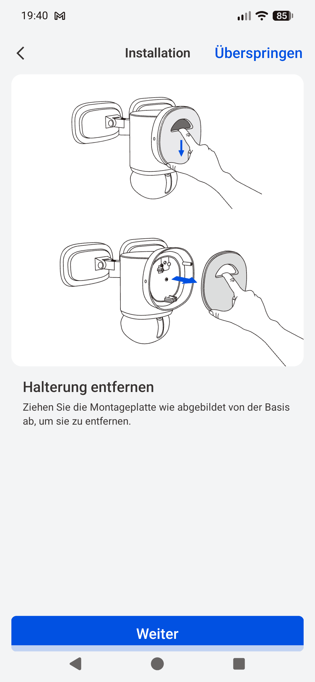 Du kannst die App einfach herunterladen, den QR-Code der Kamera scannen, dann verbindet sich dein Smartphone via Bluetooth mit der Kamera und schließt die Einrichtung sowie die Anbindung an dein WLAN ab.