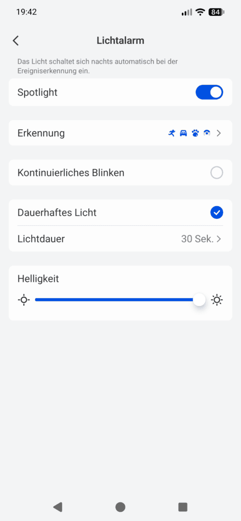 Auch abseits des Trackings überzeugt die Kamera im Test. Die Bildqualität ist bei Tag hervorragend und bleibt auch bei Nacht auf einem guten Niveau. Die beiden integrierten LED-Flutlichter sind nicht nur sehr hell, sondern auch als klassische Außenbeleuchtung nutzbar. Die smarte Objekterkennung arbeitet lokal, ist zuverlässig und reduziert Fehlalarme spürbar, was ich im Alltag nicht mehr missen möchte.