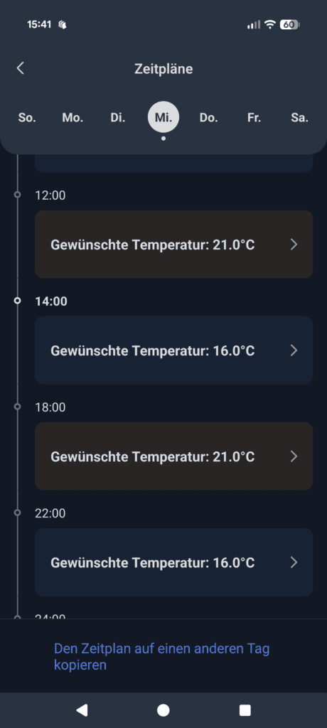 So wird es in der Regel am meisten Sinn machen, das Thermostat über solch einen Zeitplan zu steuern.