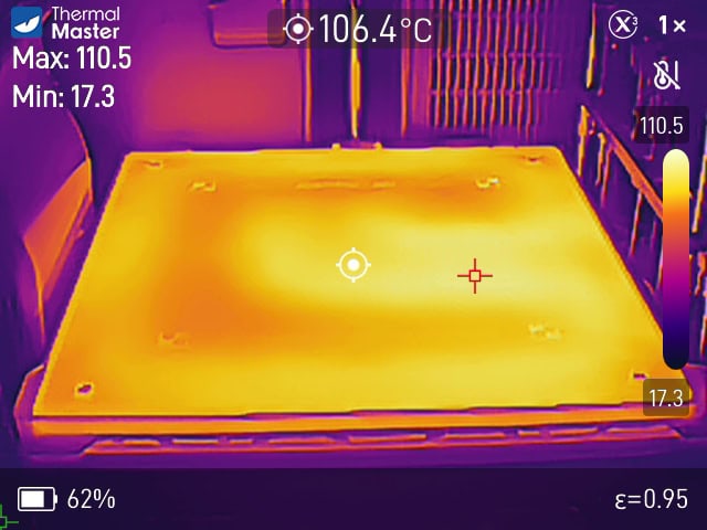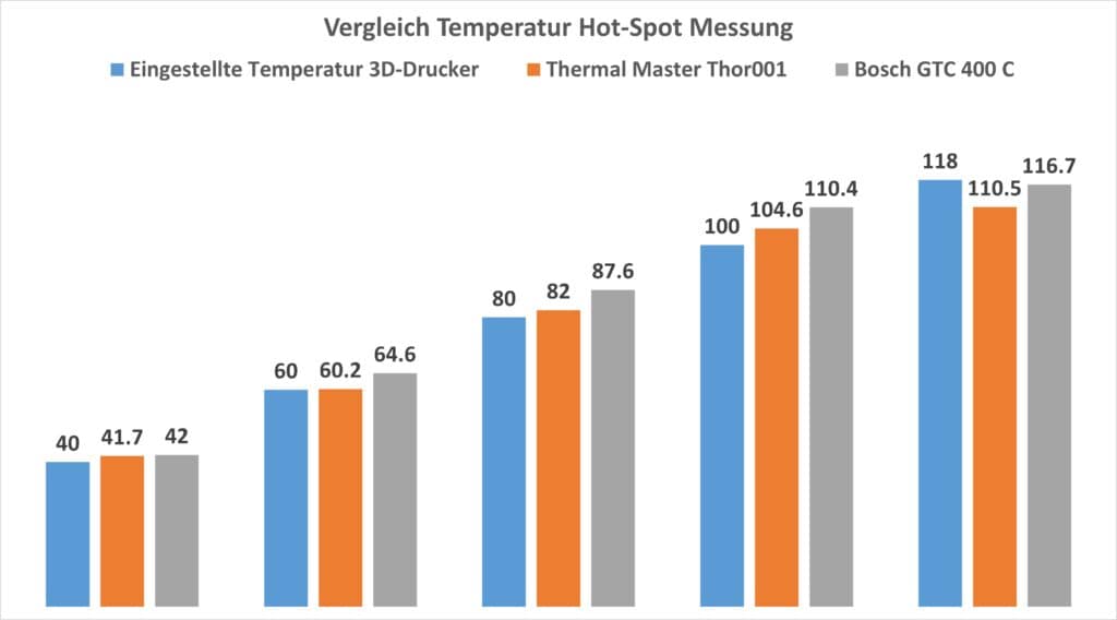 Allerdings liegen die Hot-Spot-Temperaturen der Thermal Master Thor 001 dichter an der Zieltemperatur des 3D-Druckers.