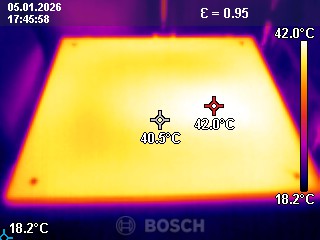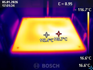 Im Folgenden habe ich das Druckbett meines Bambu Lab H2C auf 40, 60, 80, 100 und 120 Grad geheizt. Natürlich ist auch hier die Frage, wo der H2C seine Temperatur misst, denn diese ist nicht komplett gleichmäßig.